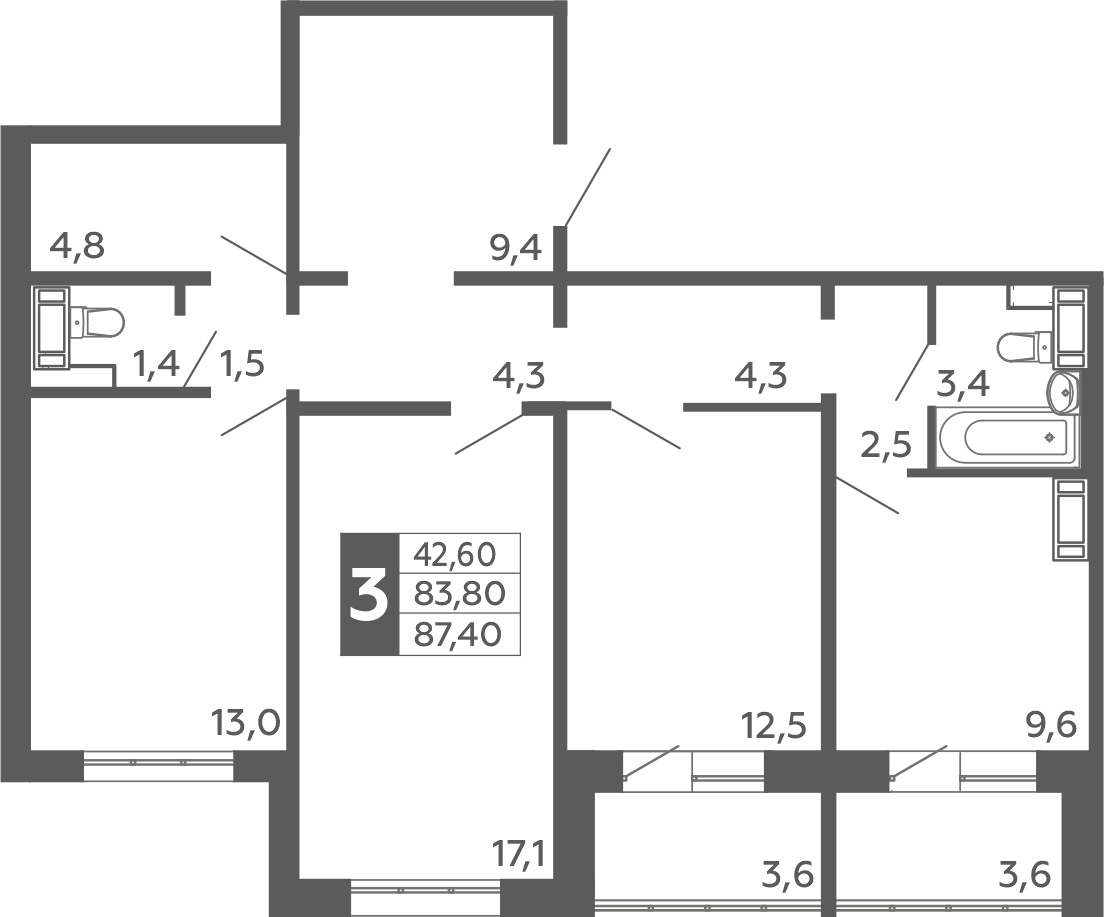 | 3-комн | от 85 м² до 87 м² | от 9,42 млн ₽ | 3 |