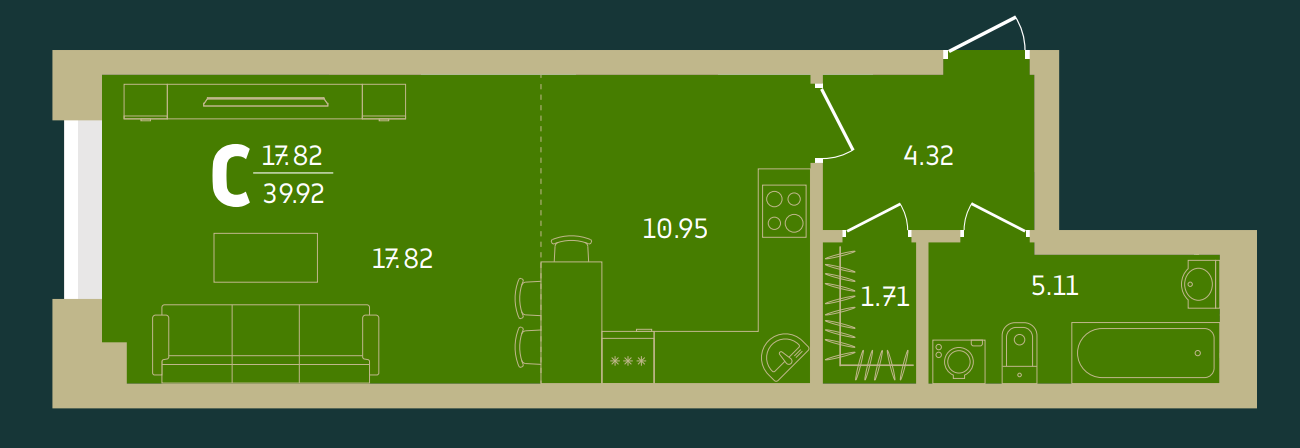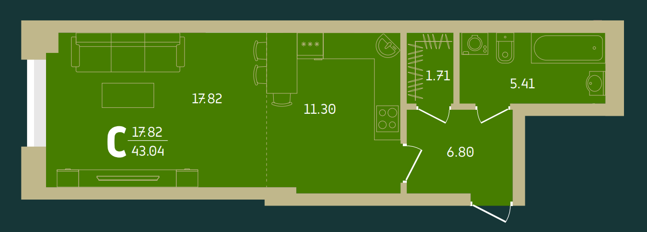 | 1-комн | от 40 м² до 46 м² | от 5,04 млн ₽ | 126 |