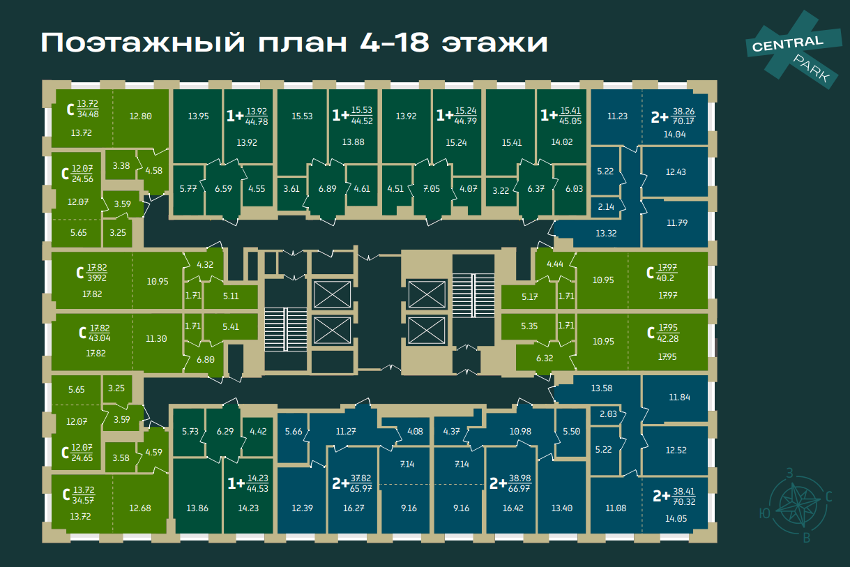 | 2-комн | от 66 м² до 71 м² | от 7,65 млн ₽ | 77 |
