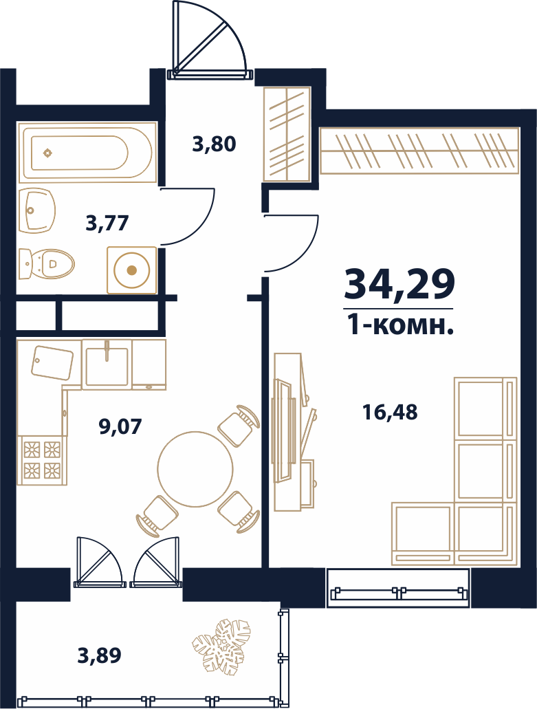 | Студии | от 34 м² | от 4,00 млн ₽ | 4 |