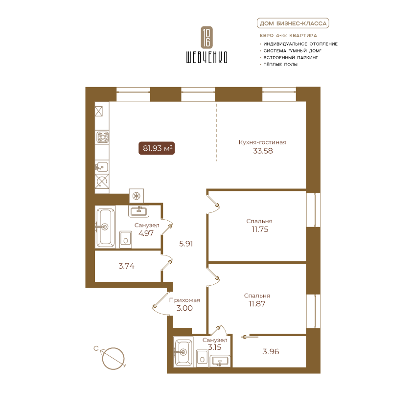 | 3-комн | от 82 м² | от 14,93 млн ₽ | 1 |