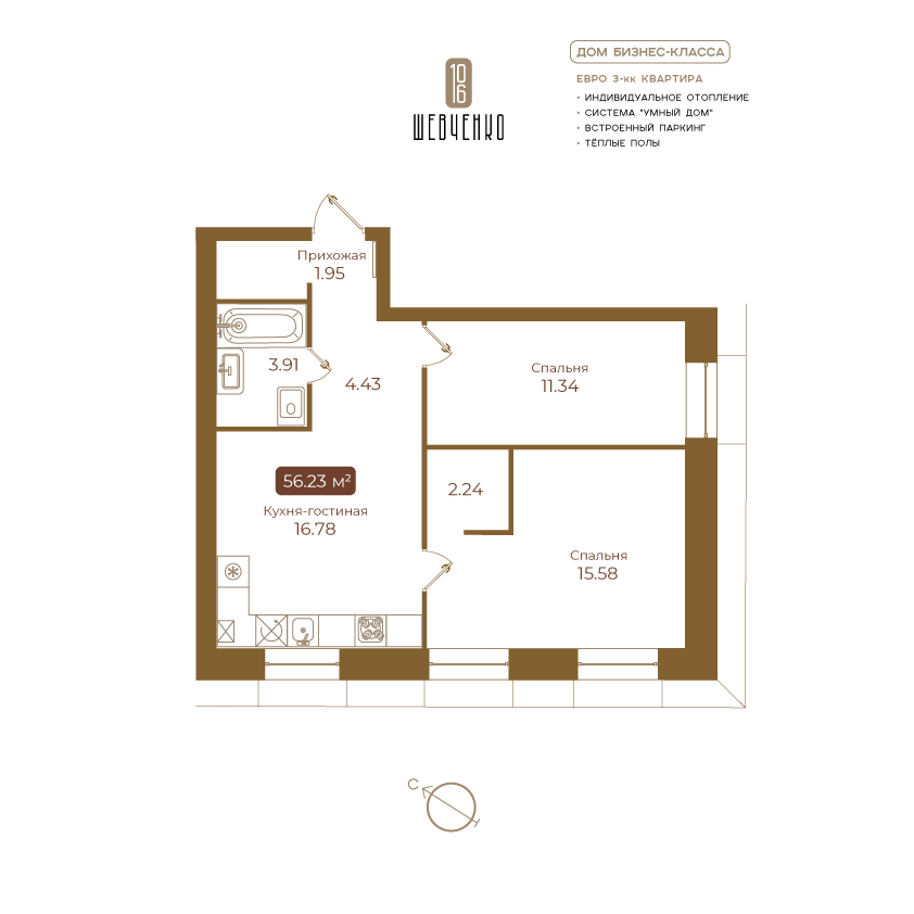 | 2-комн | от 56 м² | от 11,56 млн ₽ | 2 |