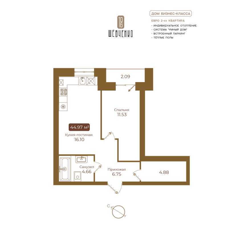 | 1-комн | от 45 м² | от 9,00 млн ₽ | 1 |