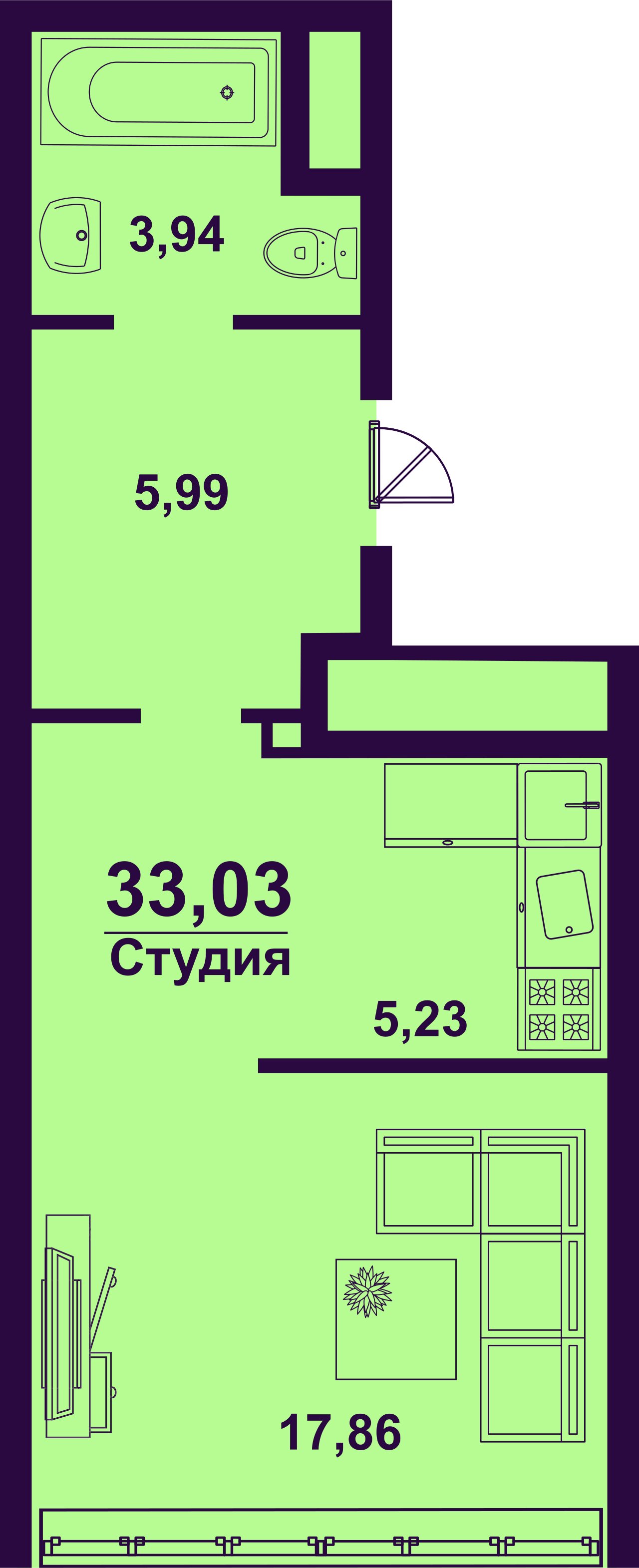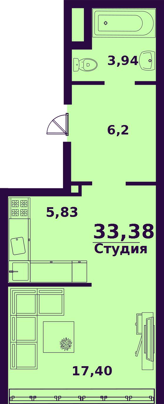 | Студии | от 33 м² | от 2,94 млн ₽ | 10 |