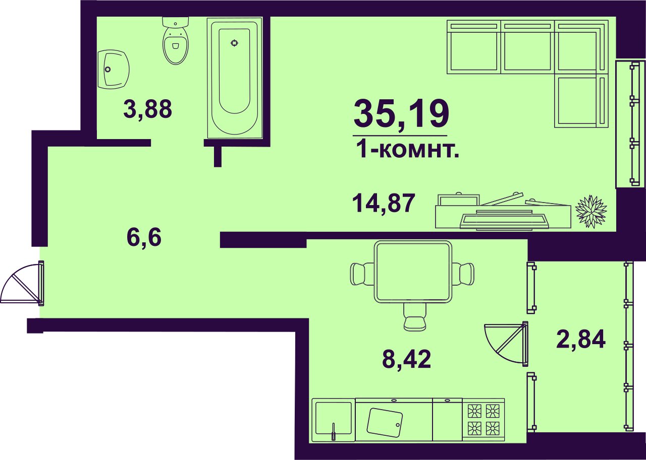 | 2-комн | от 35 м² до 63 м² | от 3,15 млн ₽ | 434 |
