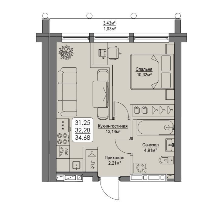 | 1-комн | от 31 м² до 65 м² | от 10,51 млн ₽ | 11 |