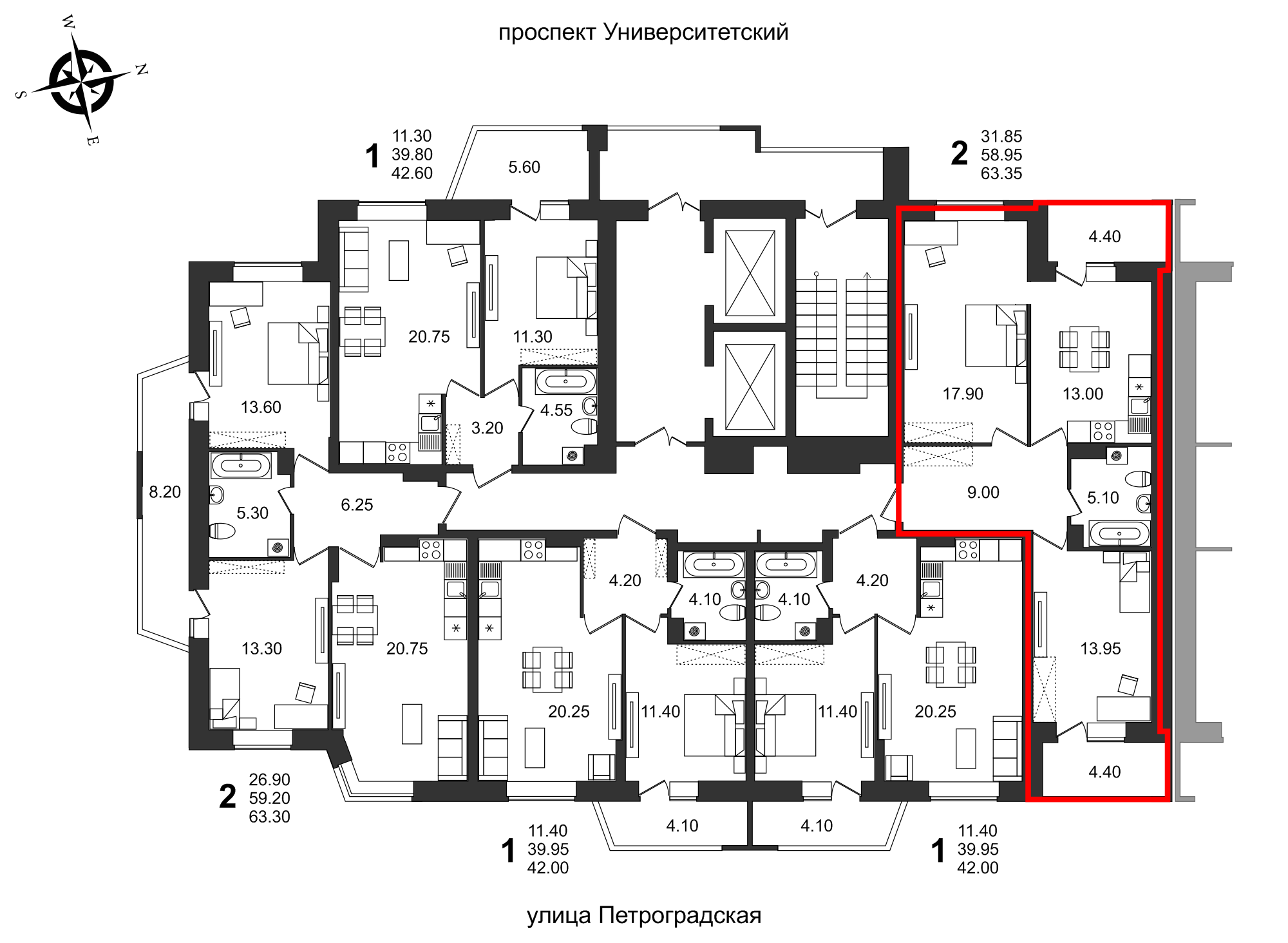 | 2-комн | от 61 м² до 63 м² | от 7,45 млн ₽ | 7 |