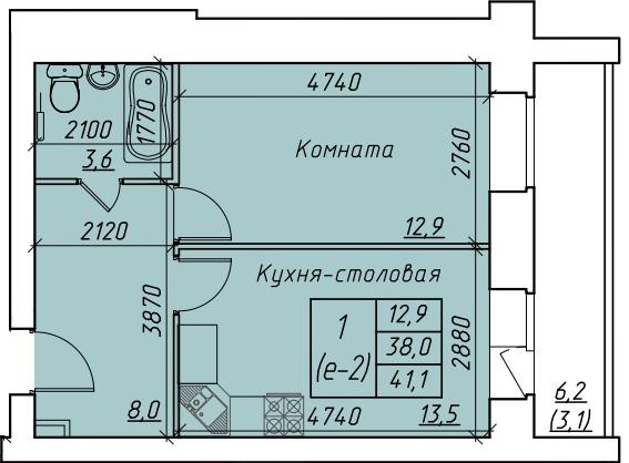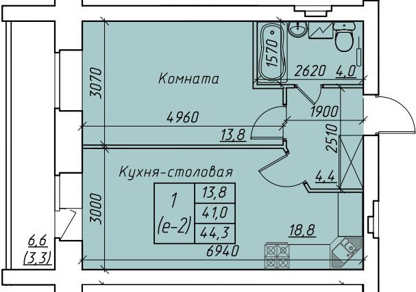 | 1-комн | от 41 м² до 44 м² | от 4,51 млн ₽ | 3 |