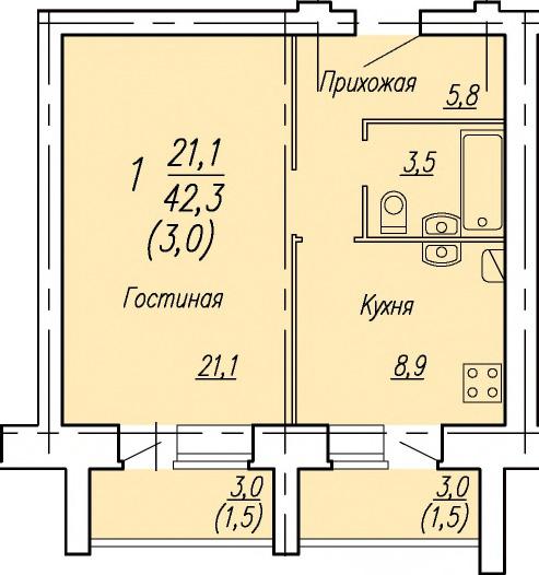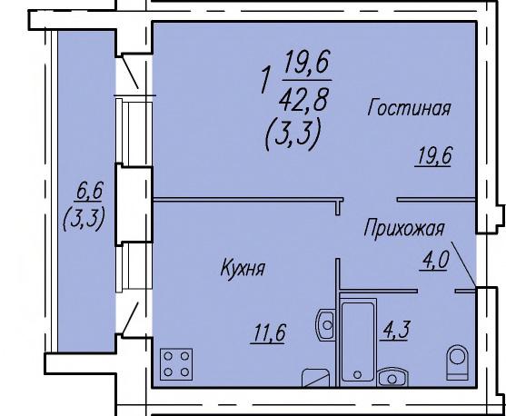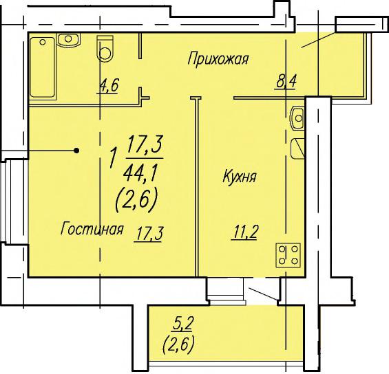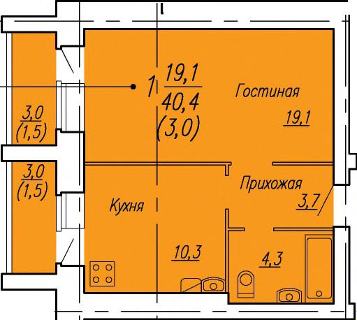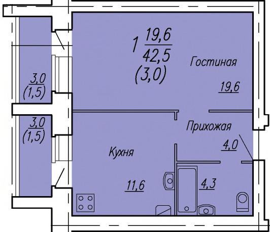 | 1-комн | от 40 м² до 44 м² | от 4,20 млн ₽ | 72 |