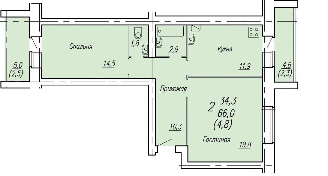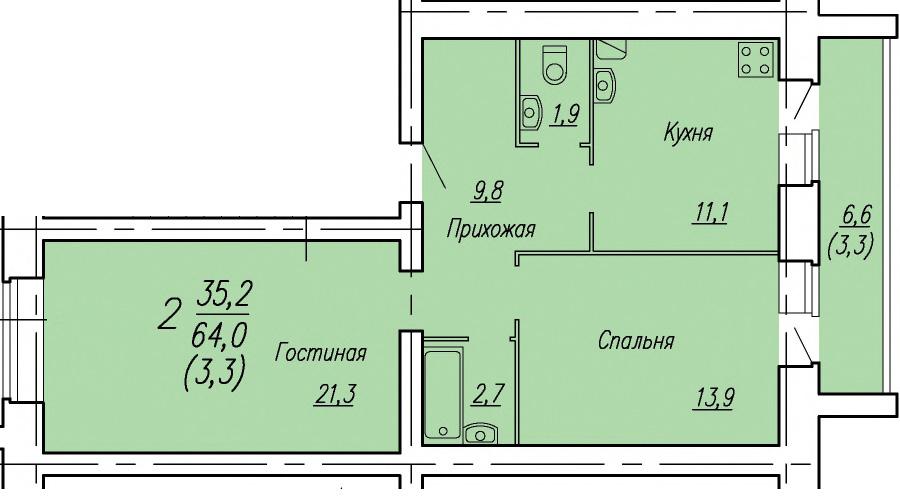 | 2-комн | от 64 м² до 74 м² | от 5,31 млн ₽ | 33 |