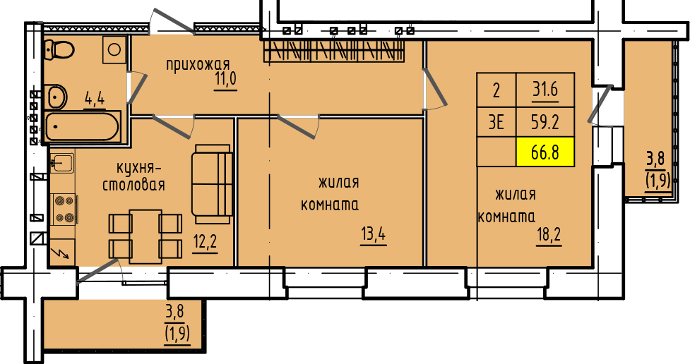 | 2-комн | от 67 м² до 81 м² | от 8,00 млн ₽ | 7 |