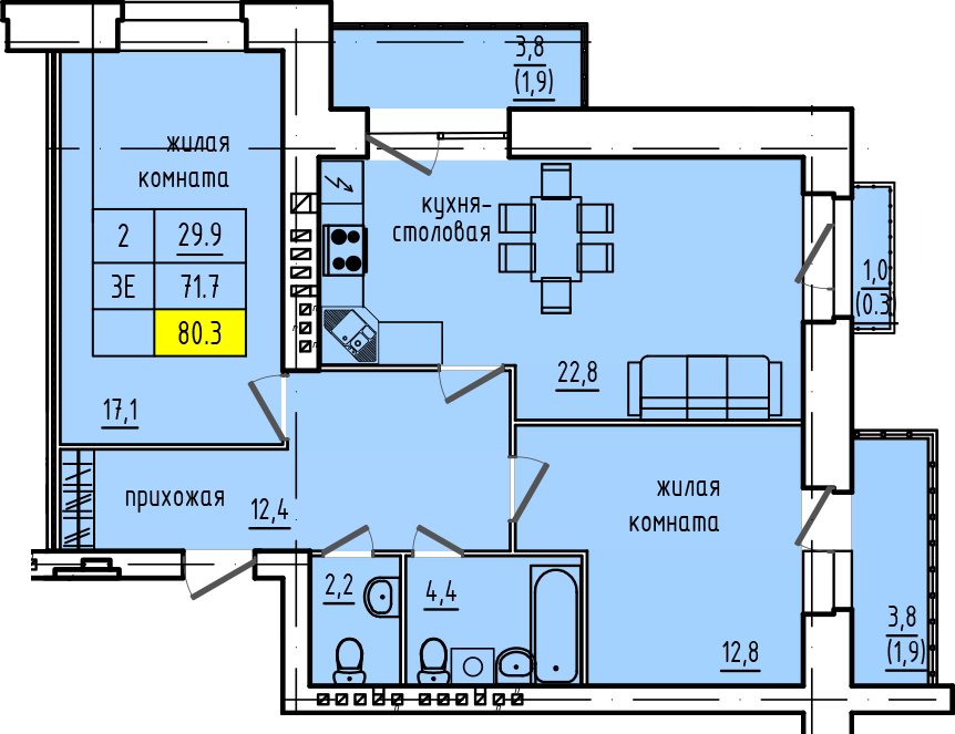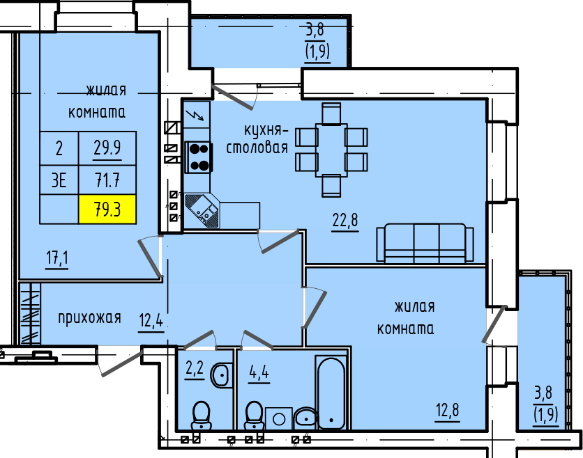 | 3-комн | от 86 м² | от 10,31 млн ₽ | 1 |