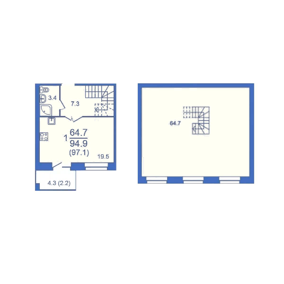 | 1-комн | от 45 м² до 97 м² | от 4,70 млн ₽ | 3 |