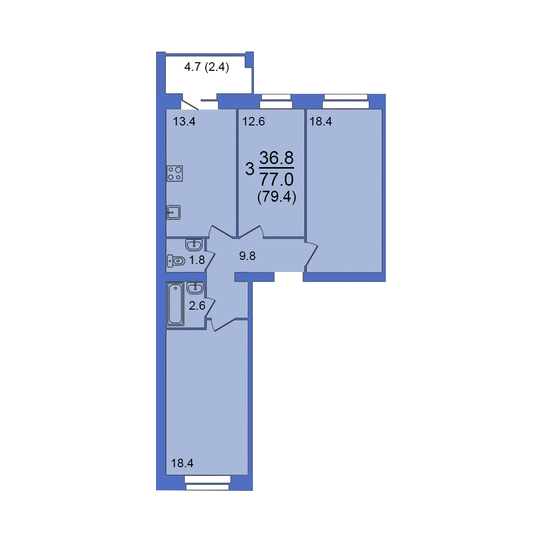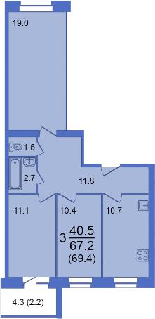 | 3-комн | от 69 м² до 107 м² | от 7,12 млн ₽ | 18 |