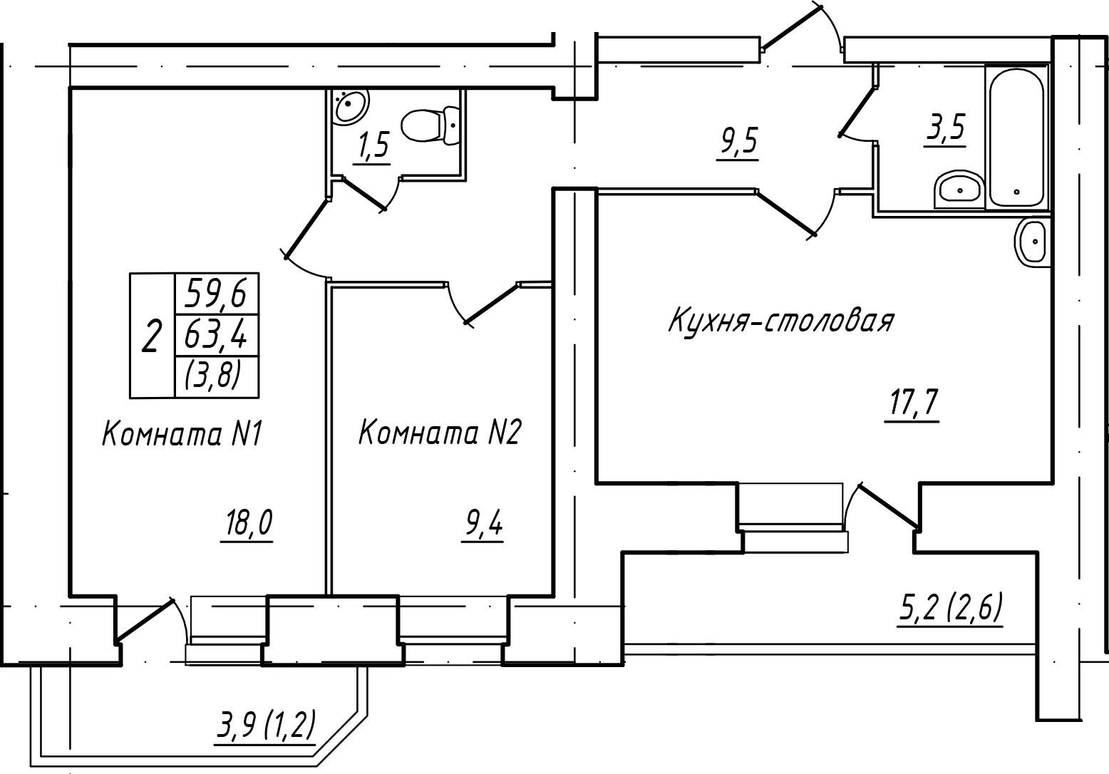 | 2-комн | от 53 м² до 63 м² | от 4,58 млн ₽ | 30 |