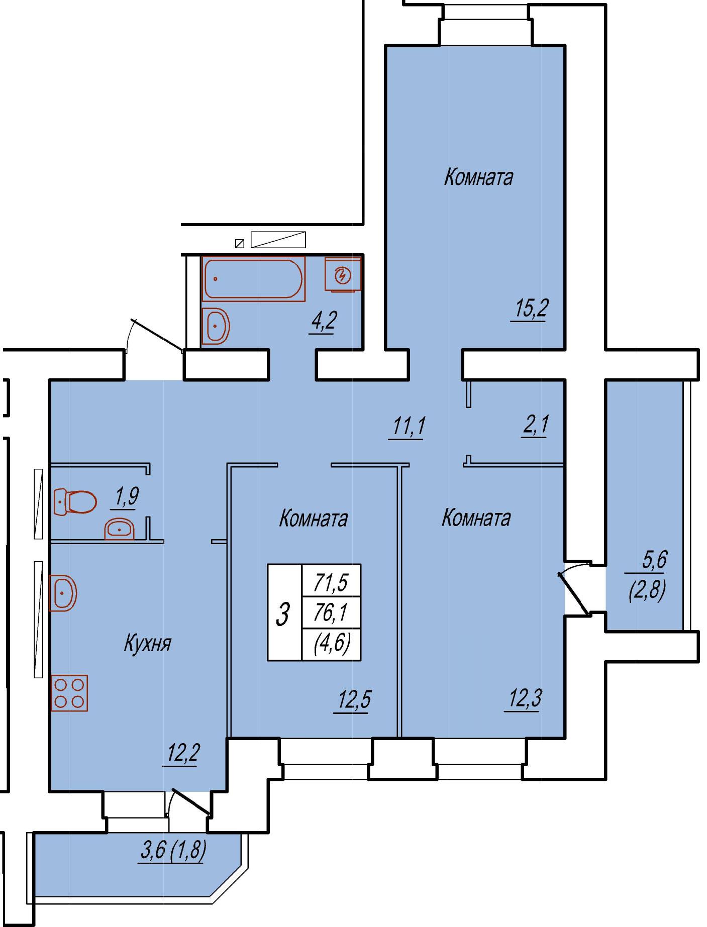 | 3-комн | от 73 м² до 76 м² | от 6,04 млн ₽ | 3 |