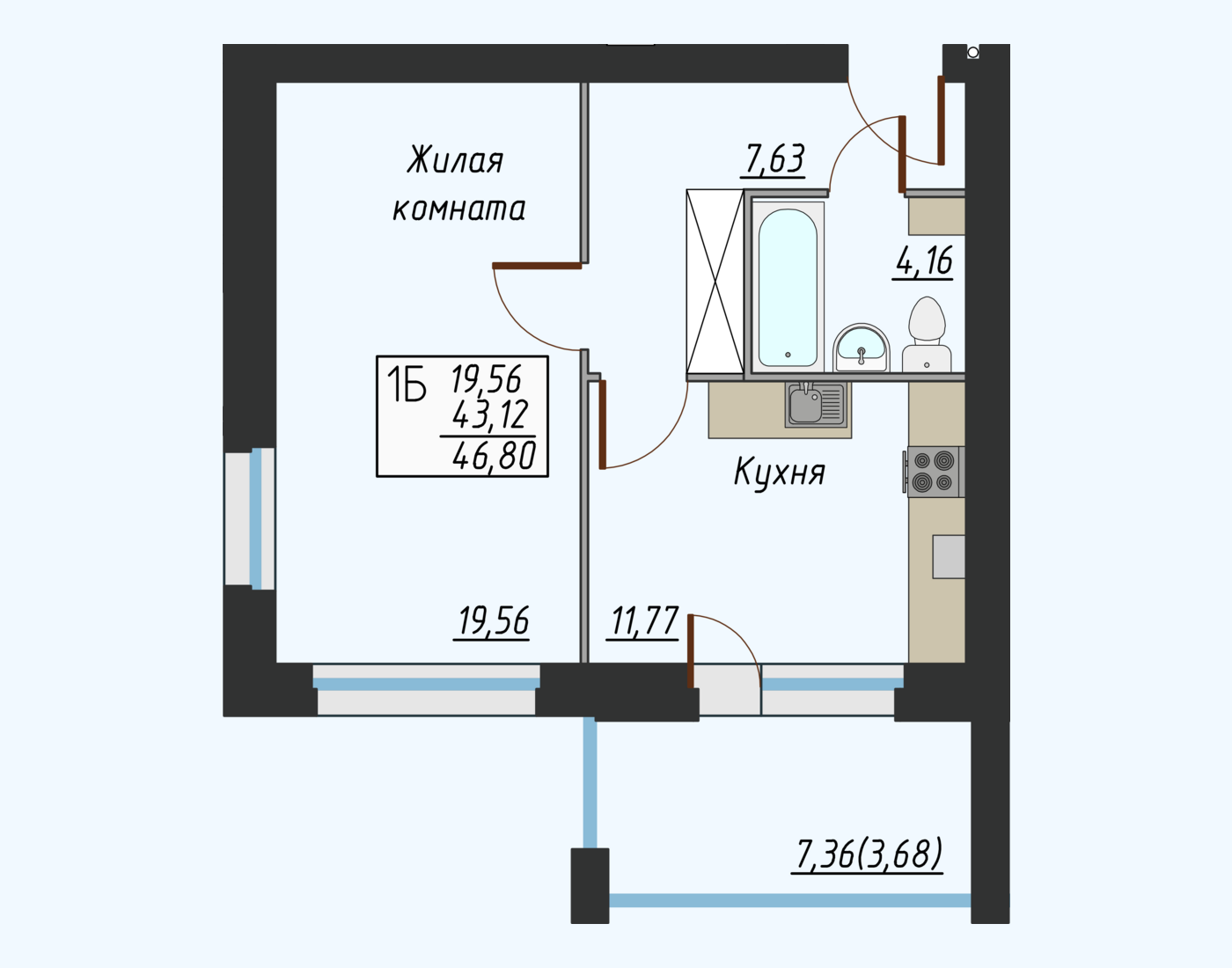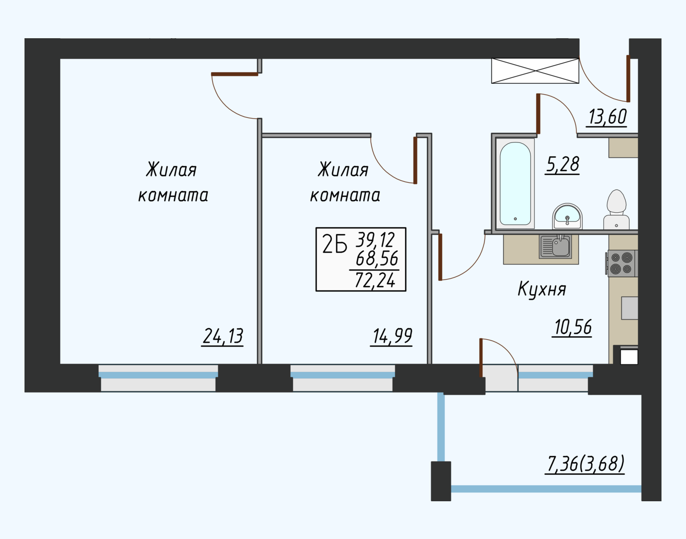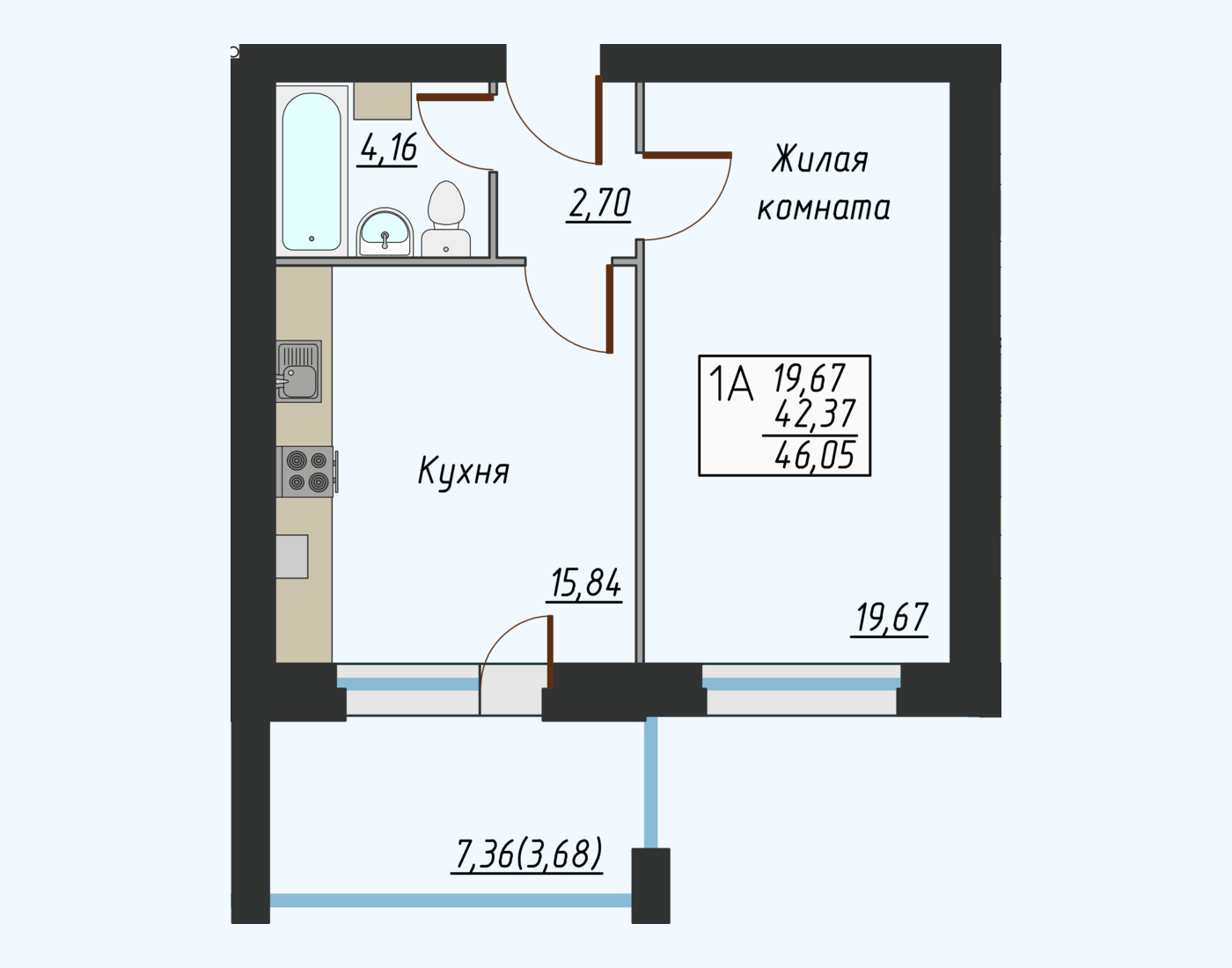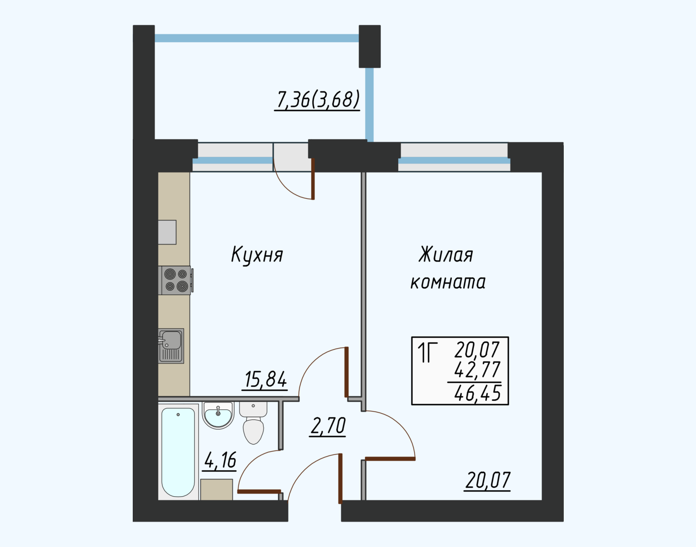 | 1-комн | от 46 м² до 57 м² | от 5,99 млн ₽ | 11 |
