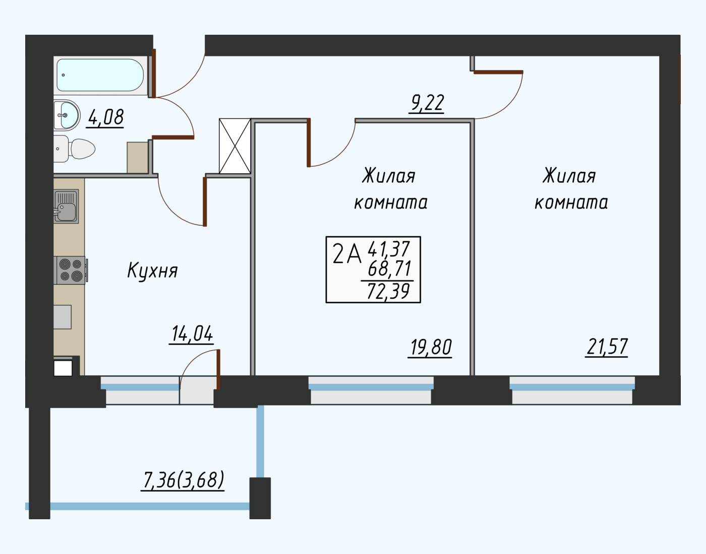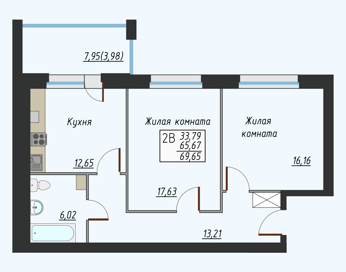 | 2-комн | от 70 м² до 77 м² | от 9,05 млн ₽ | 16 |