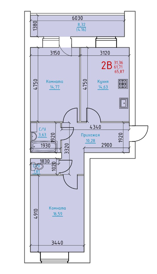 | 1-комн | от 41 м² до 47 м² | от 4,26 млн ₽ | 9 |