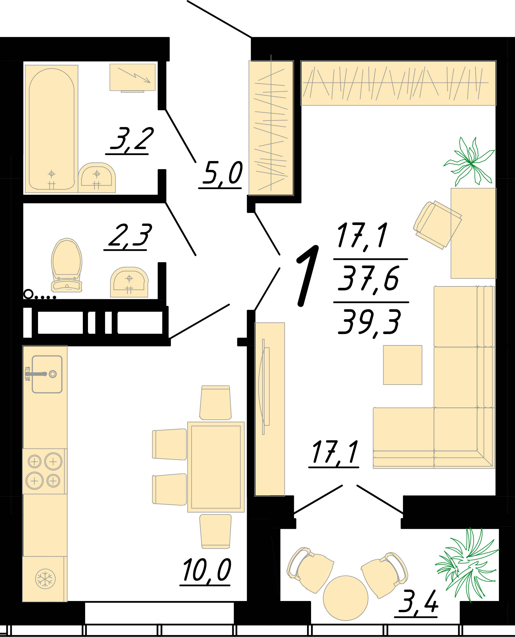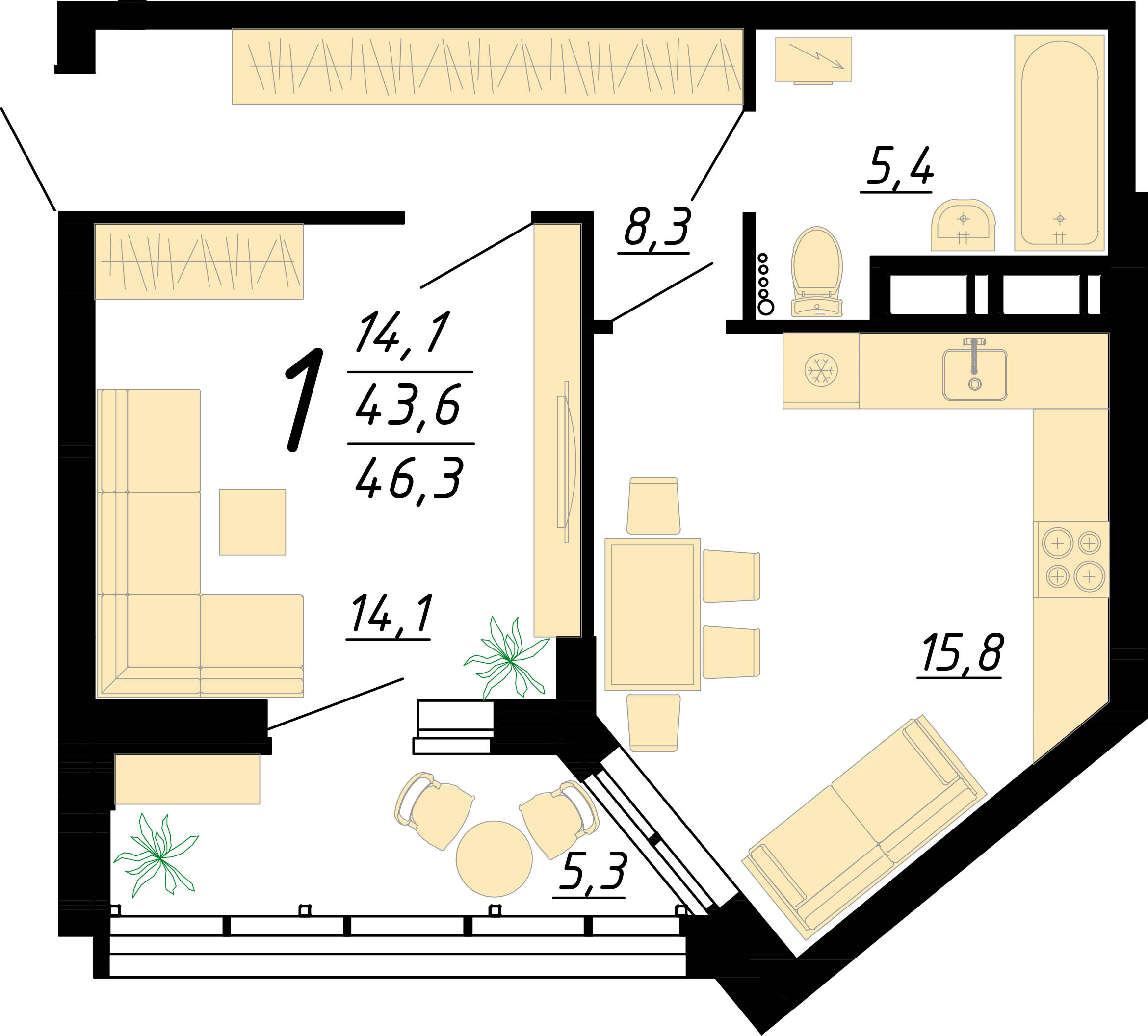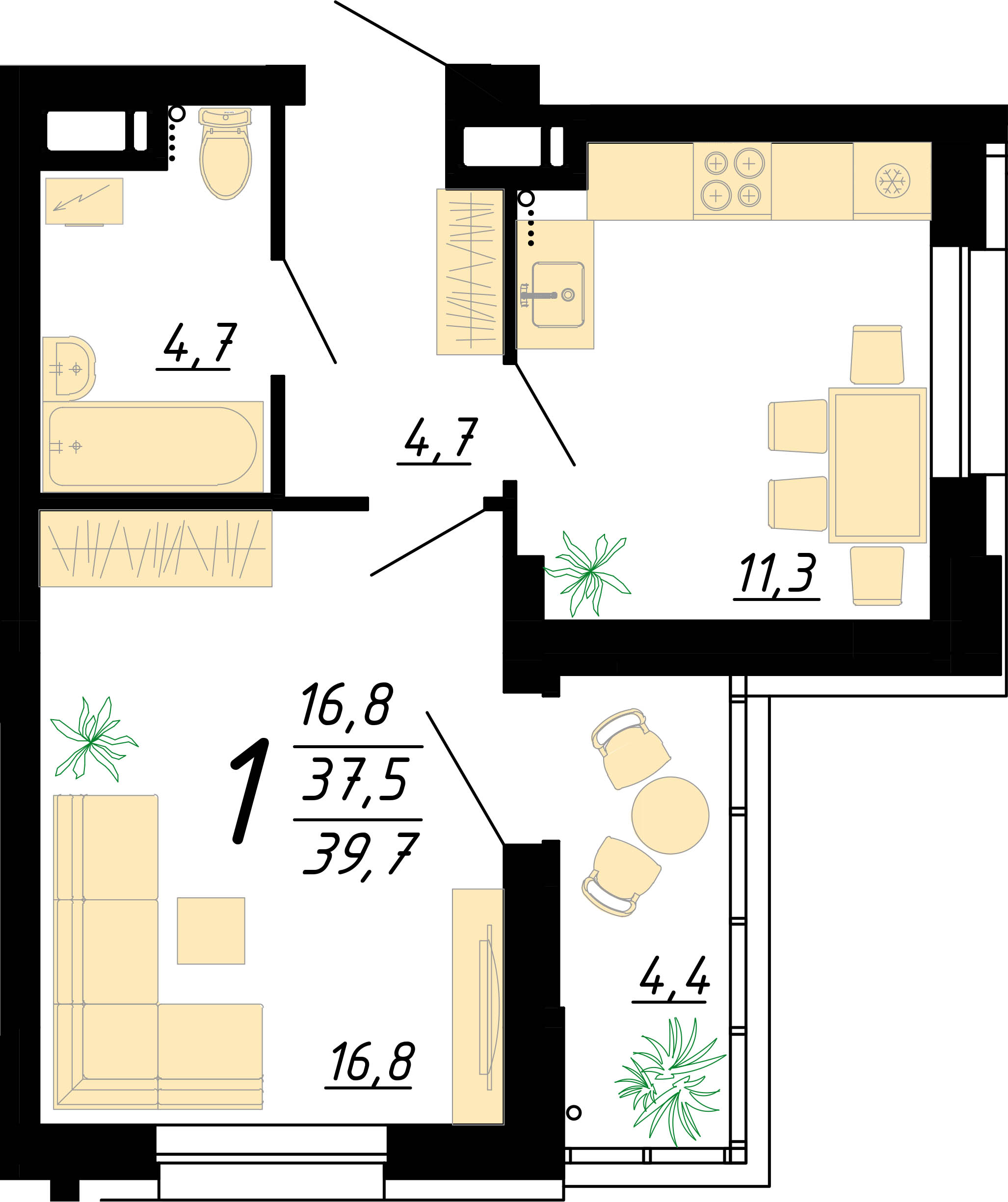 | 1-комн | от 39 м² до 46 м² | от 8,81 млн ₽ | 57 |