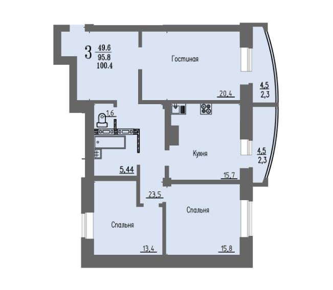 | 3-комн | от 101 м² до 104 м² | от 10,30 млн ₽ | 53 |