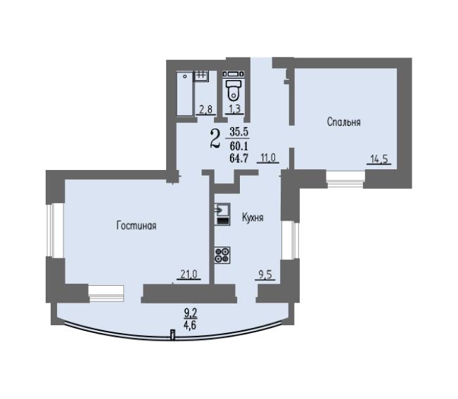 | 2-комн | от 65 м² до 82 м² | от 7,30 млн ₽ | 142 |