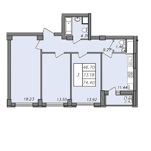 | 3-комн | от 73 м² | от 8,28 млн ₽ | 1 |