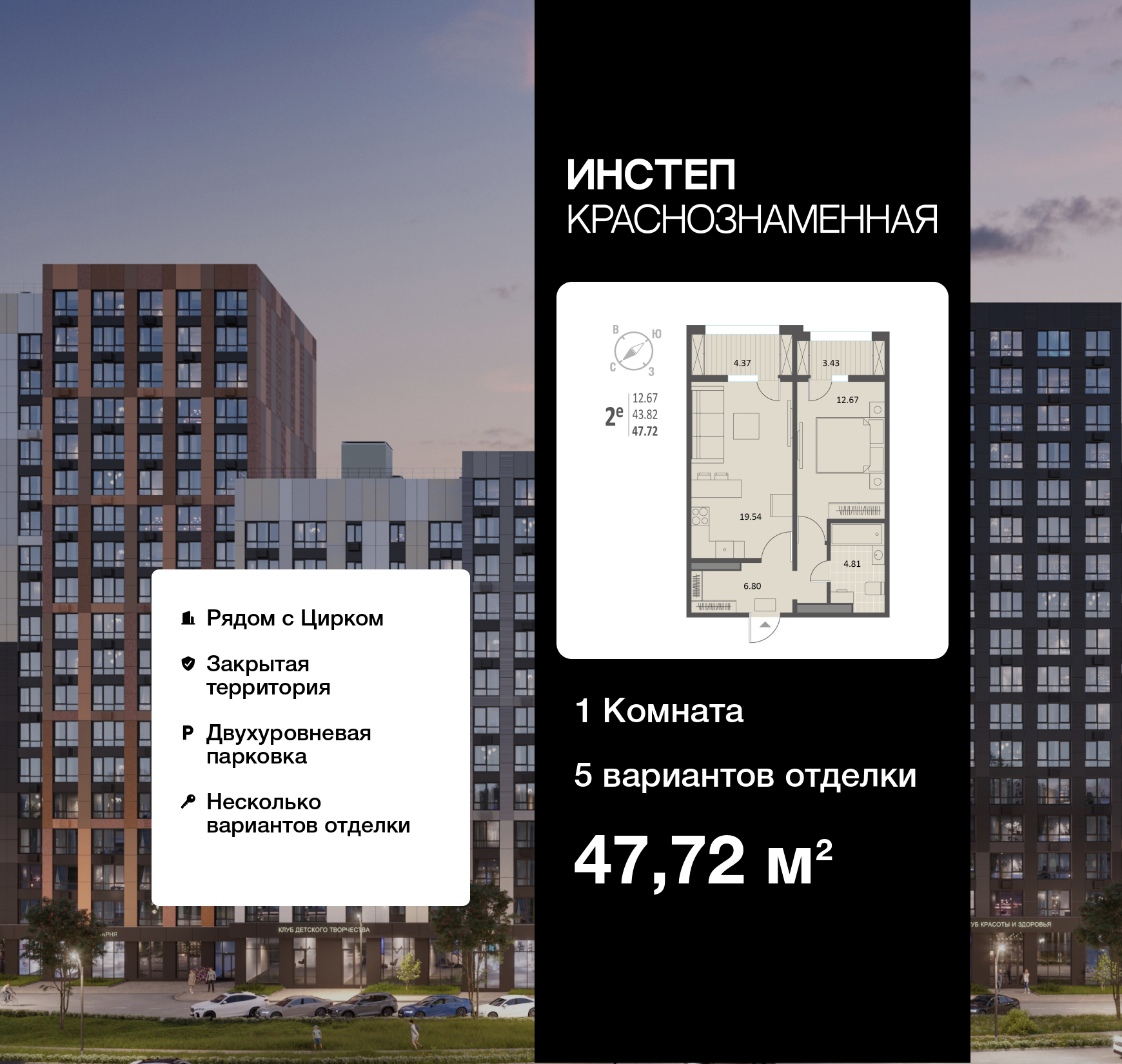 Описание ЖК Жилой комплекс «Инстеп.Краснознаменная» представляет собой 4-секционное панельное здание переменной этажности. Дом находится в районе с развитой инфраструктурой, в пяти минутах езды от...