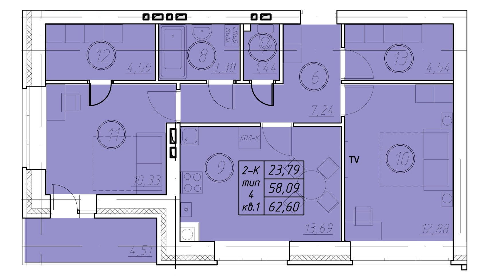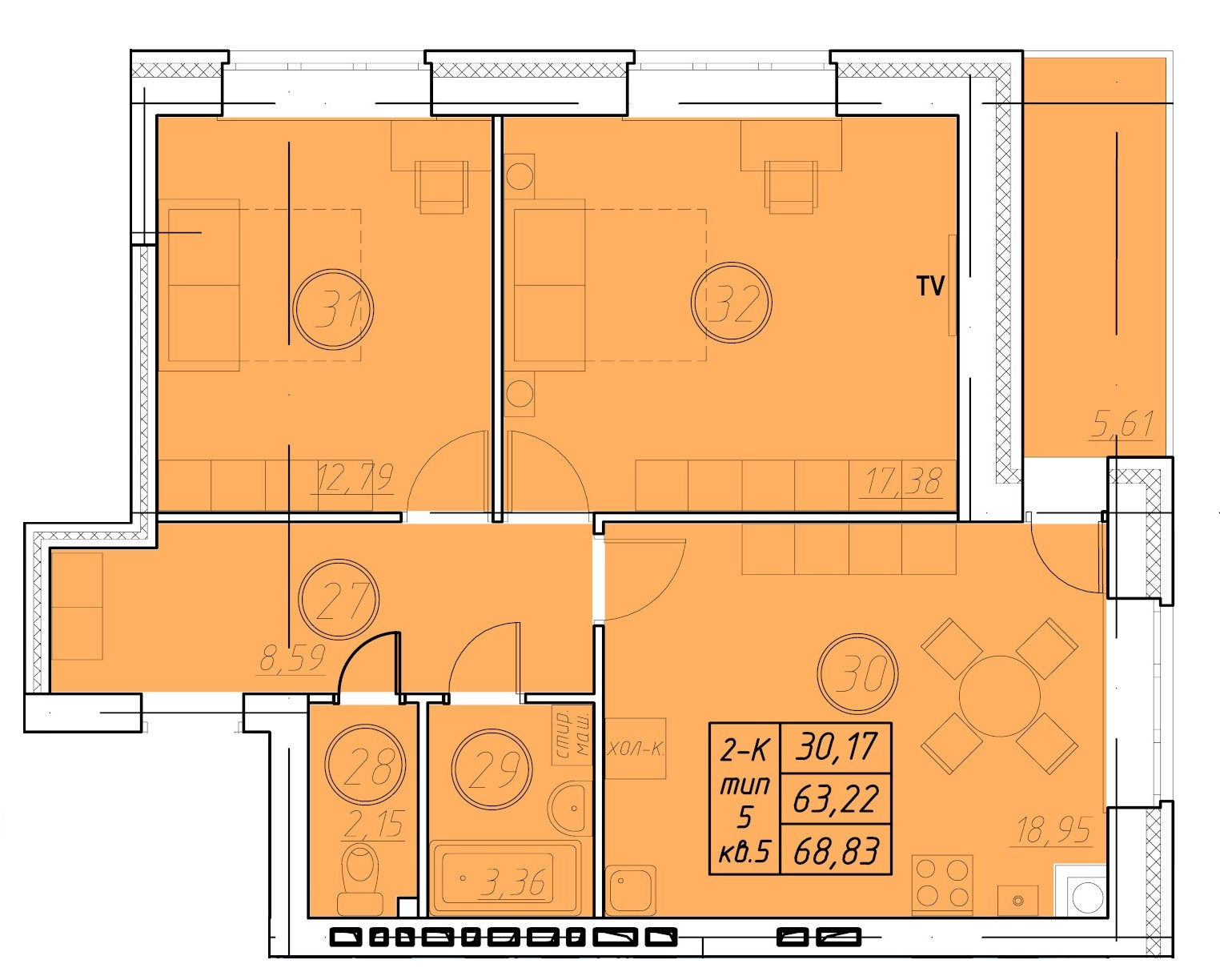 | 2-комн | от 63 м² до 69 м² | от 4,93 млн ₽ | 2 |
