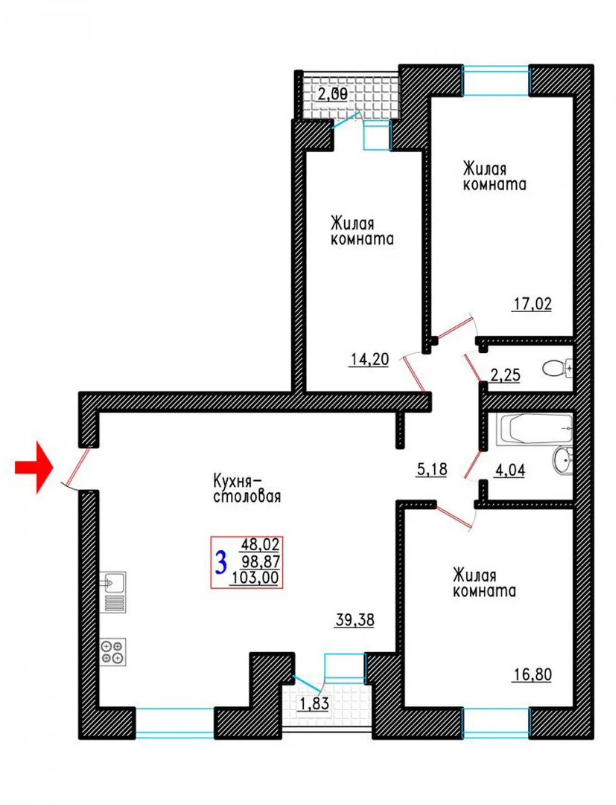 | 3-комн | от 72 м² до 101 м² | от 7,15 млн ₽ | 23 |