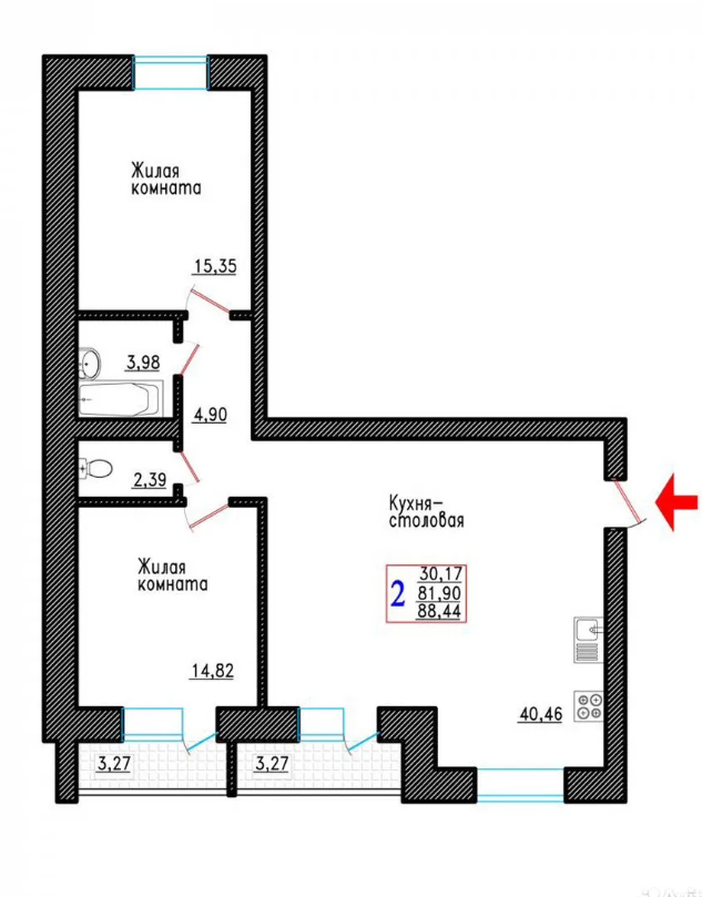 | 1-комн | от 35 м² до 44 м² | от 3,91 млн ₽ | 11 |