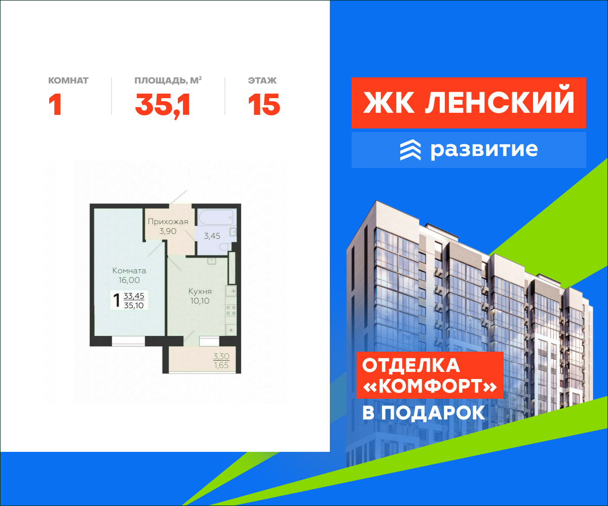 | 1-комн | от 35 м² до 42 м² | от 3,89 млн ₽ | 69 |
