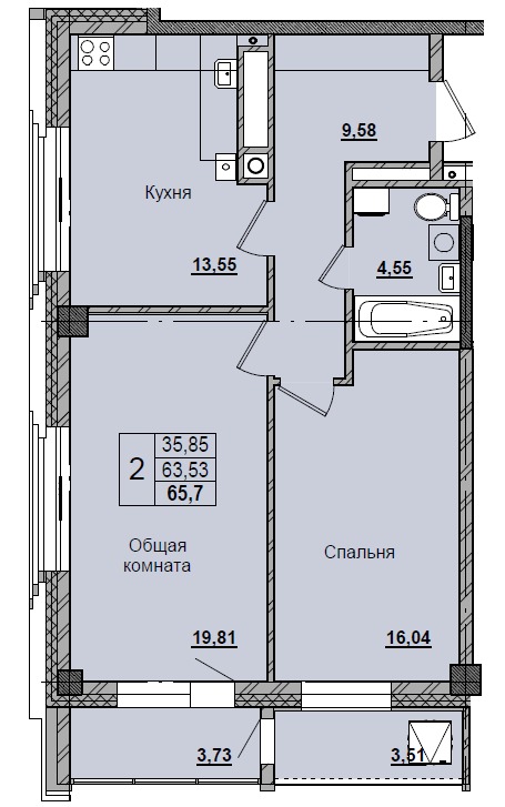 | 2-комн | от 60 м² до 73 м² | от 9,94 млн ₽ | 30 |