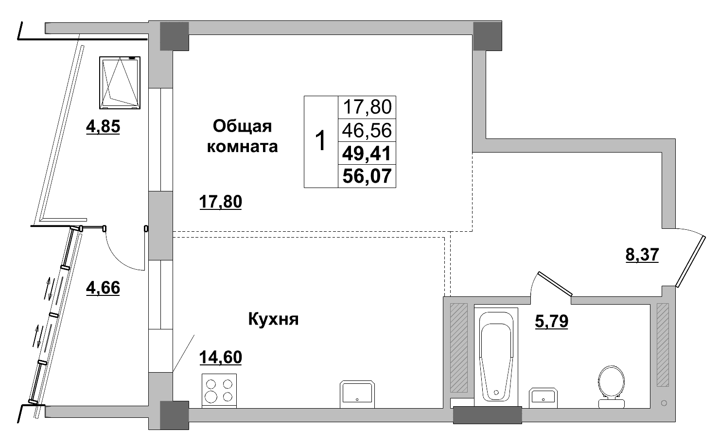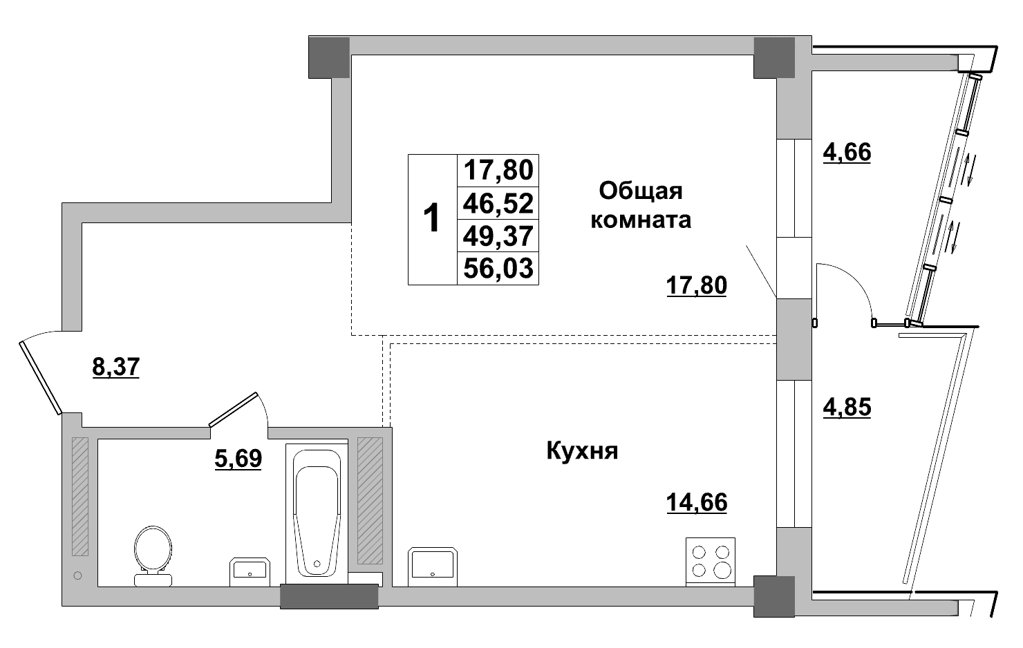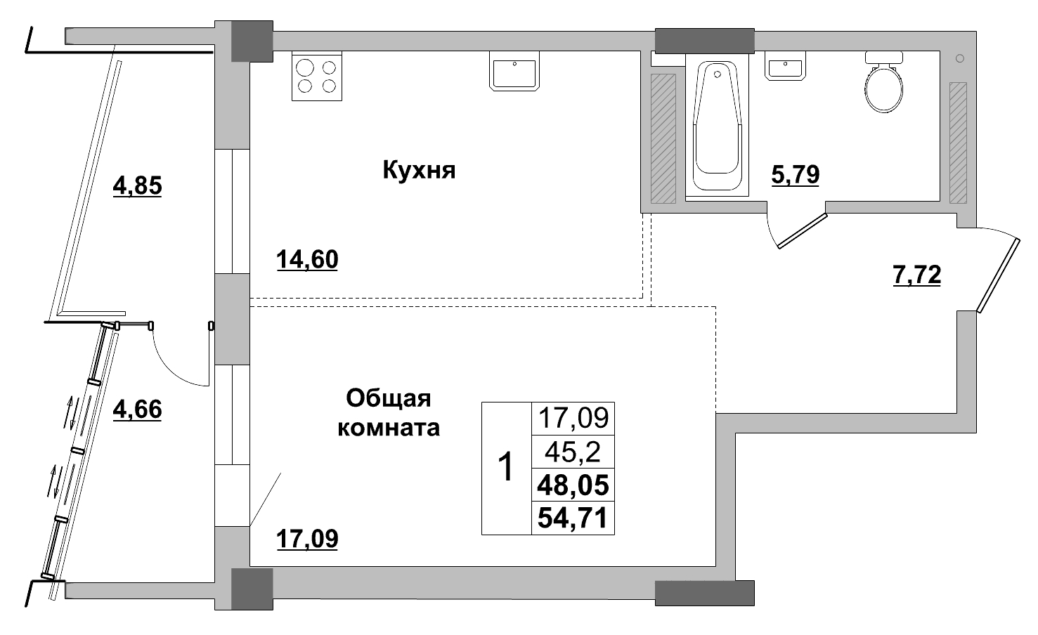 | 1-комн | от 40 м² до 53 м² | от 7,95 млн ₽ | 48 |