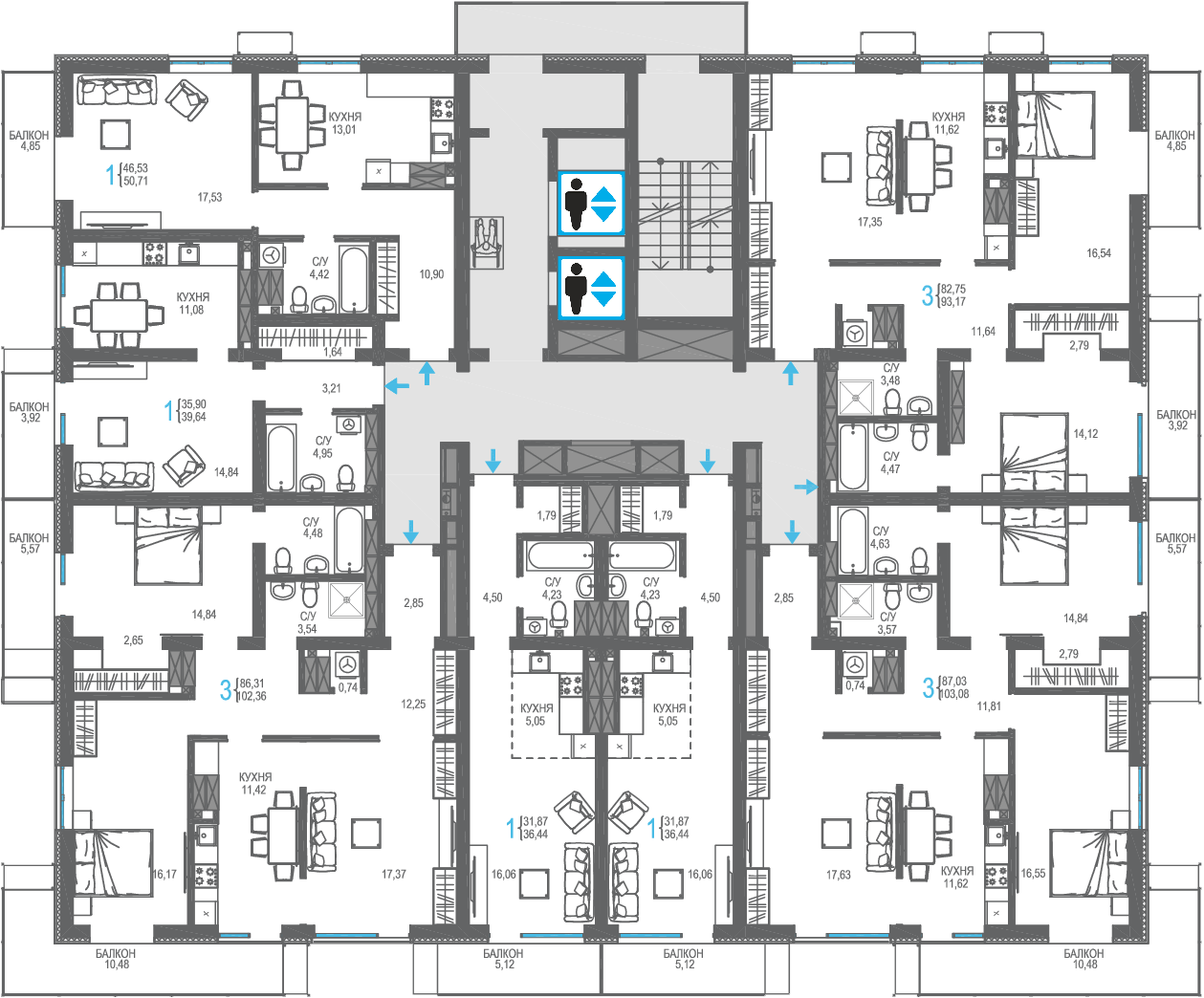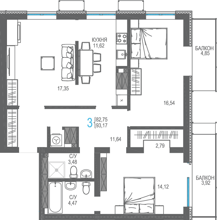 | 3-комн | от 93 м² | от 22,51 млн ₽ | 2 |