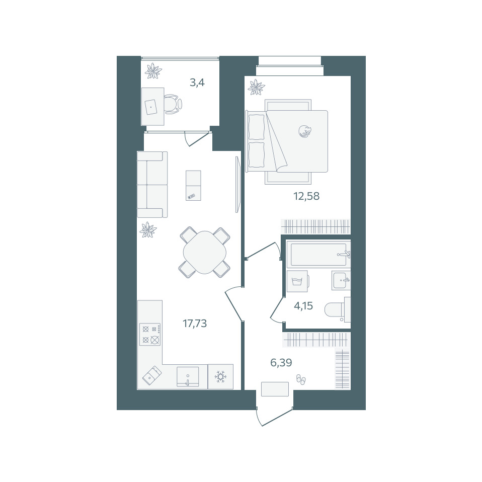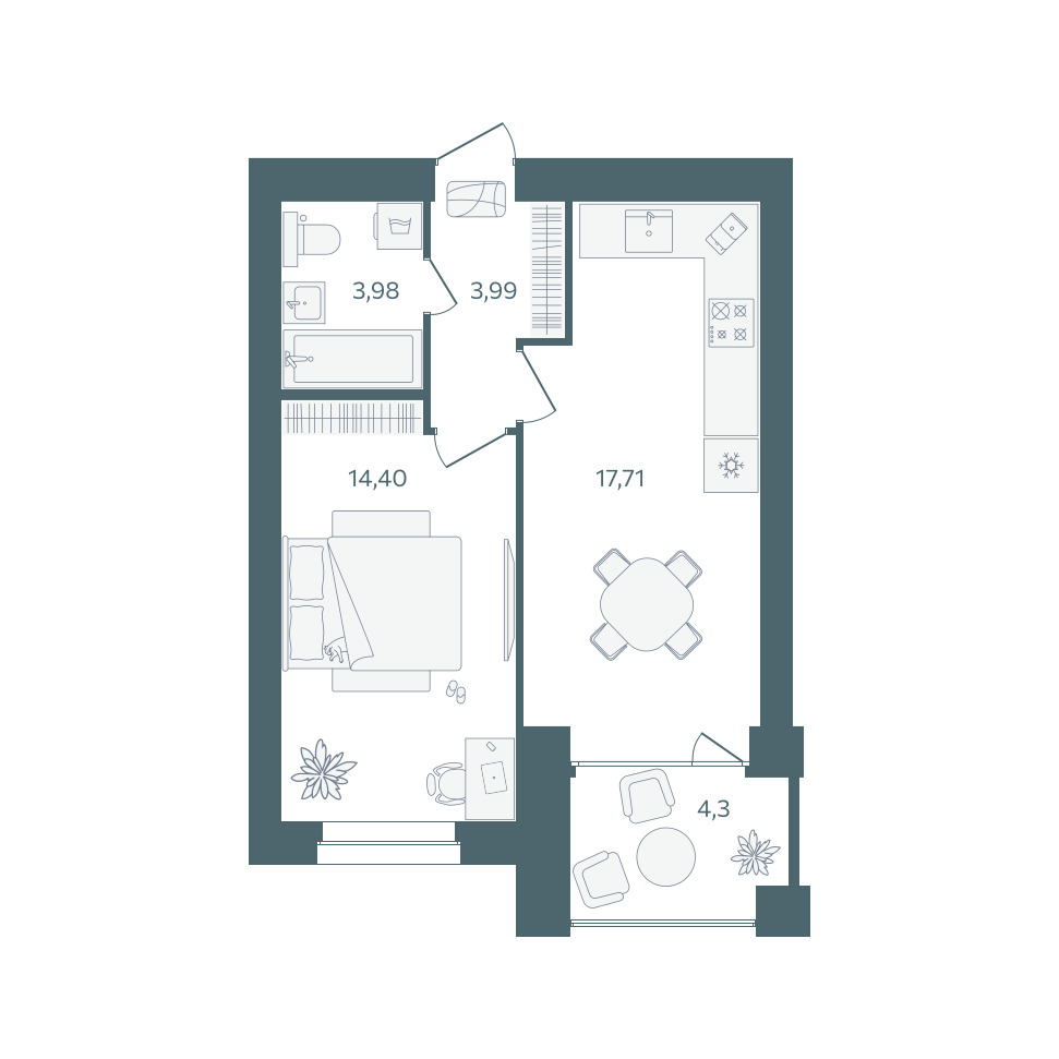 | 1-комн | от 39 м² до 48 м² | от 4,99 млн ₽ | 54 |