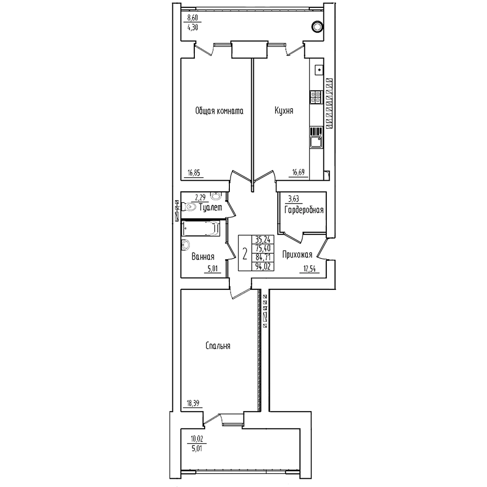 | 2-комн | от 73 м² до 94 м² | от 9,50 млн ₽ | 18 |