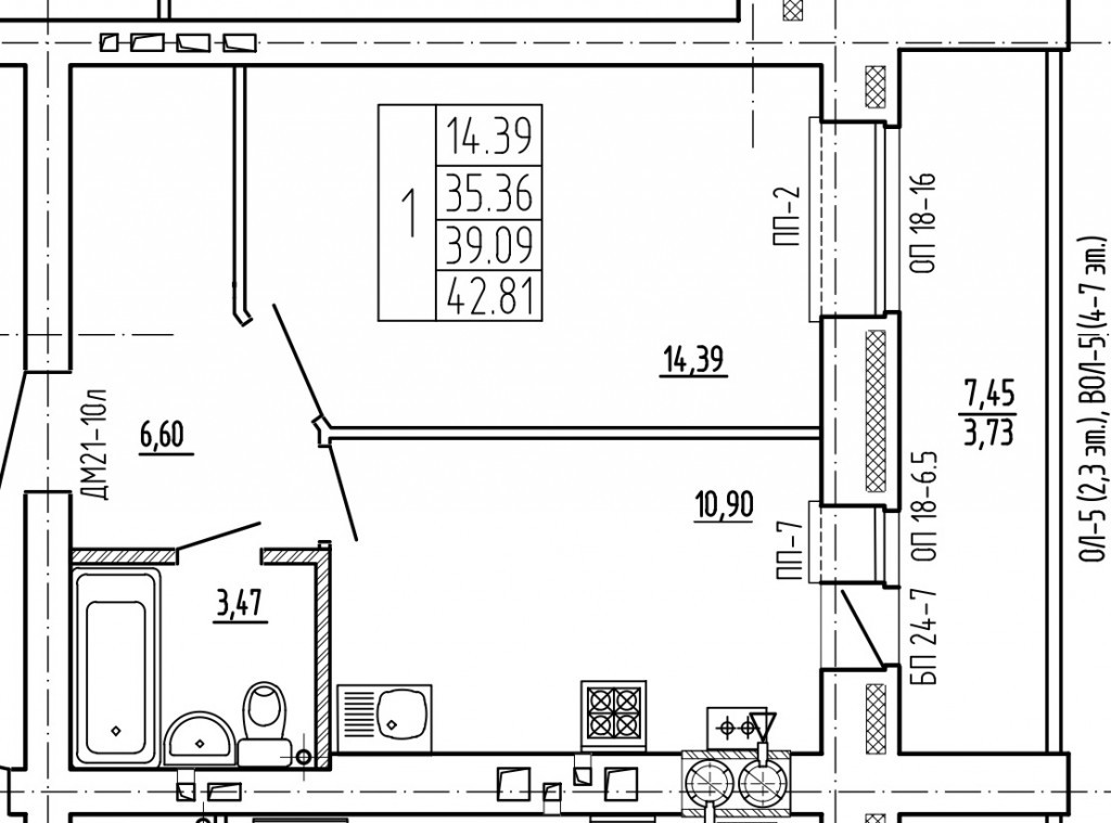 | 1-комн | от 39 м² до 44 м² | от 7,66 млн ₽ | 6 |