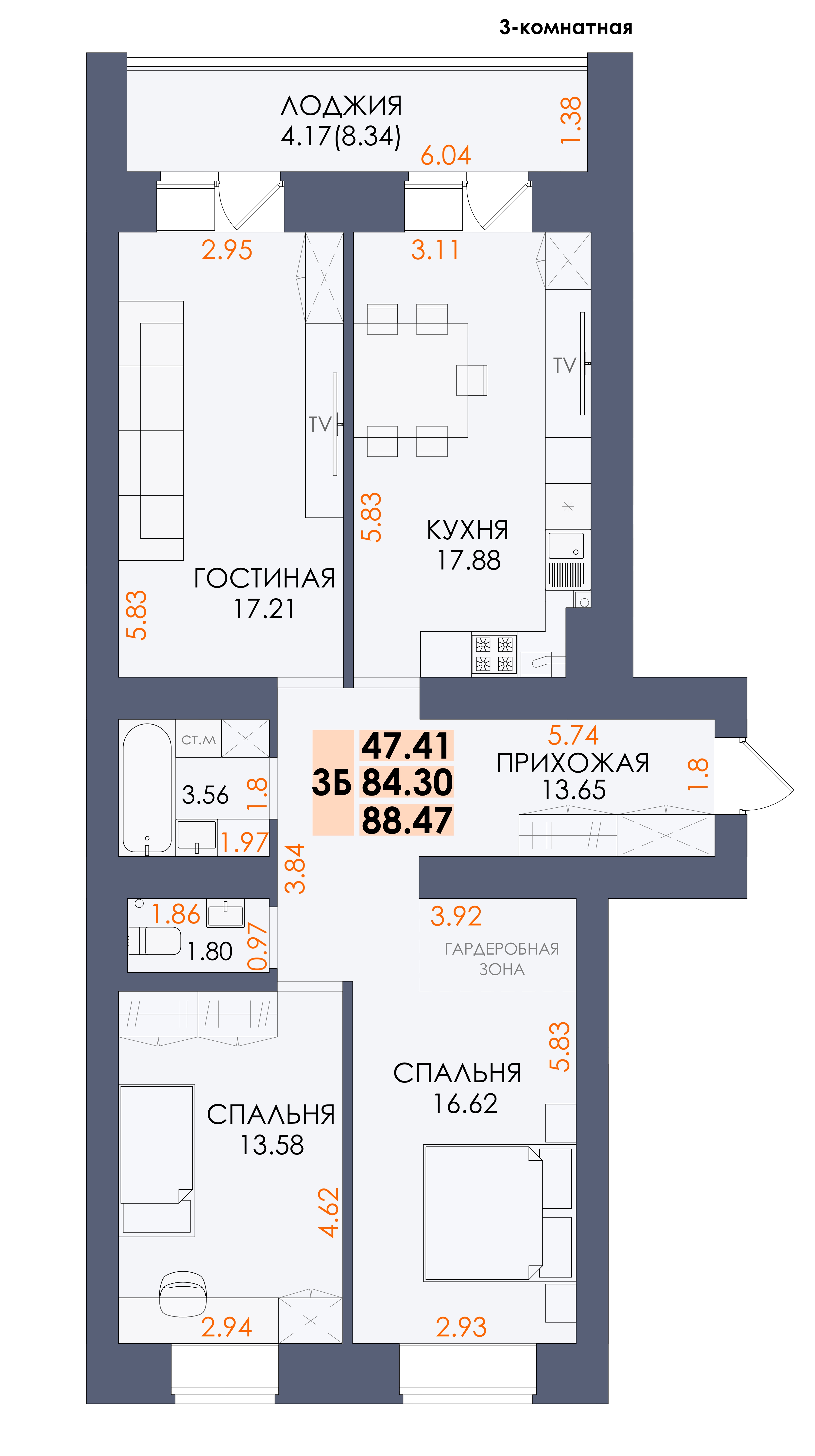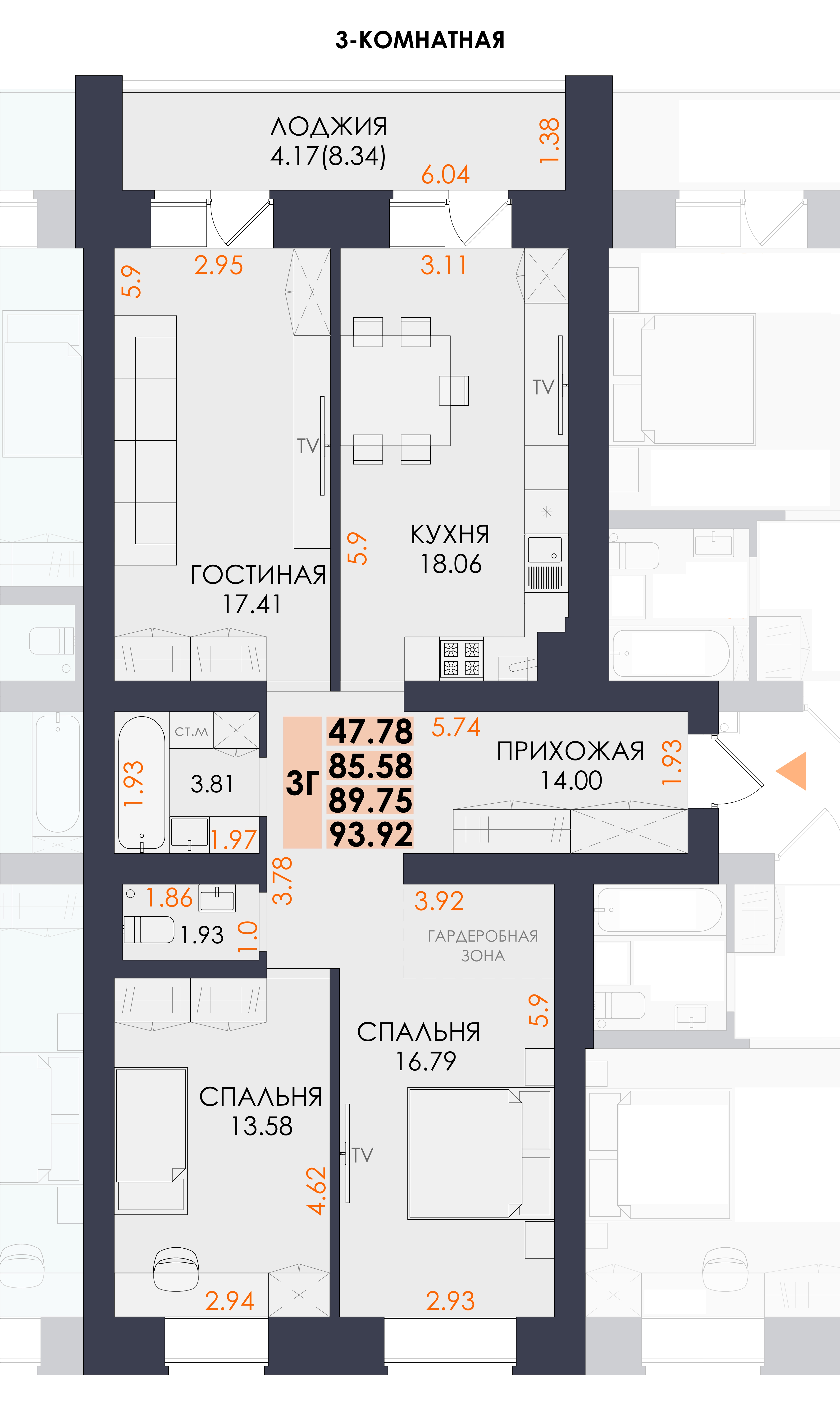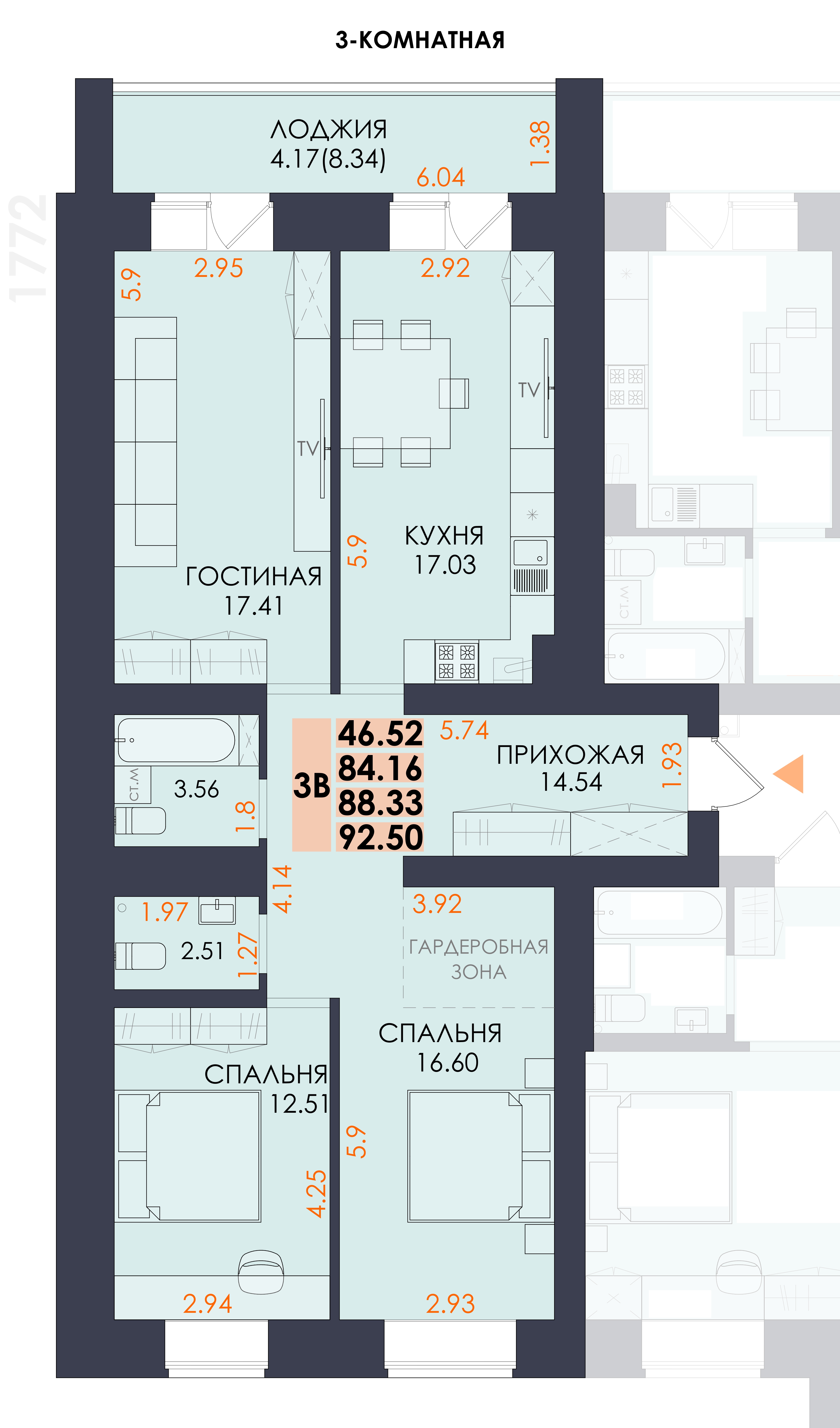 | 3-комн | от 88 м² до 121 м² | от 9,89 млн ₽ | 17 |