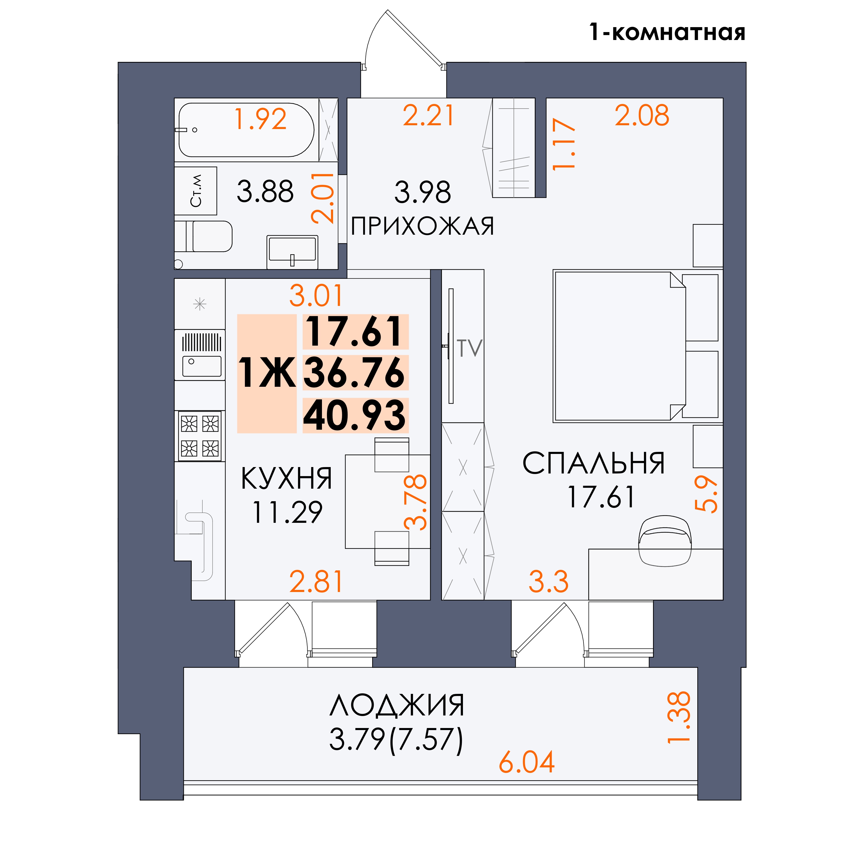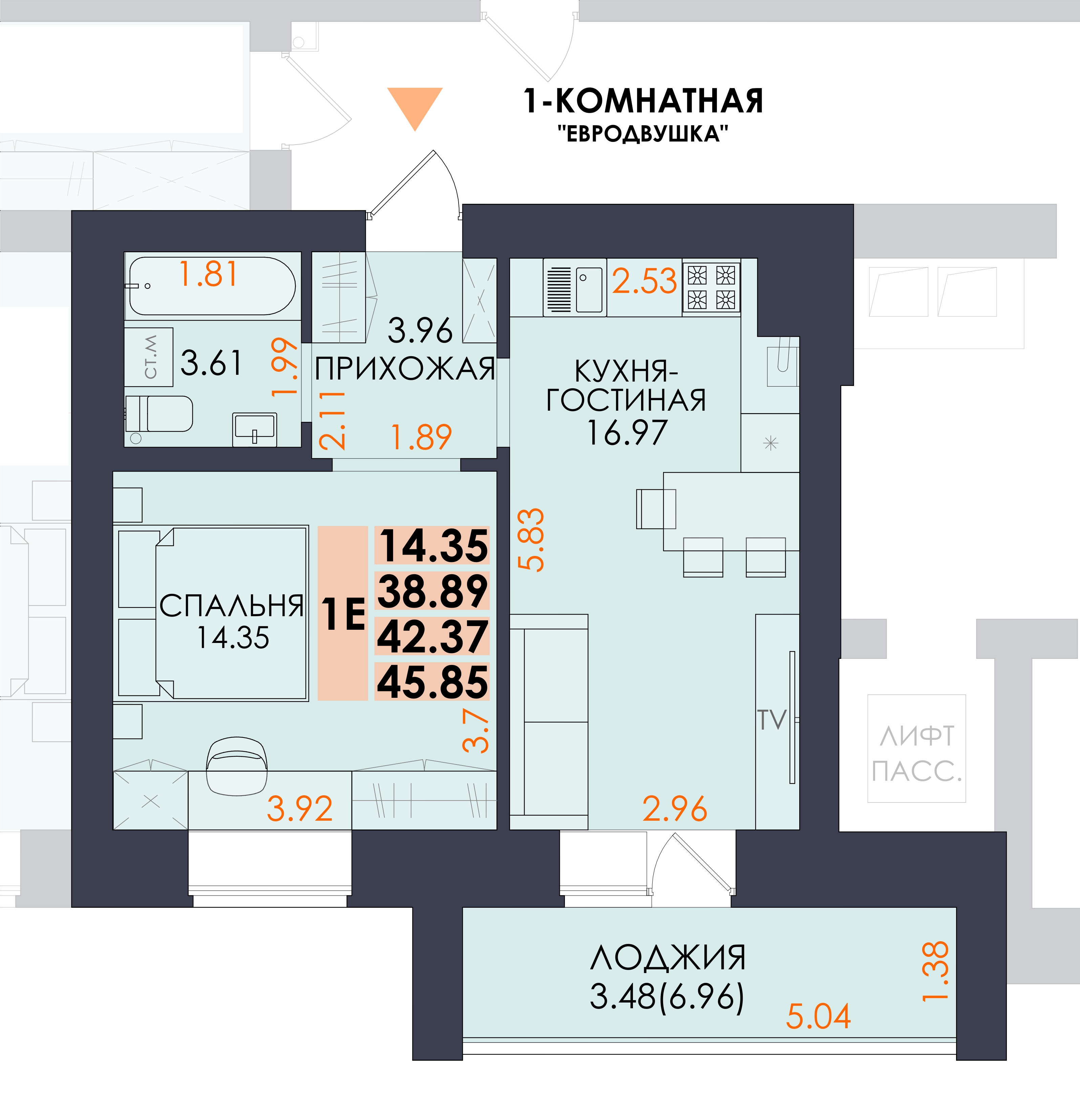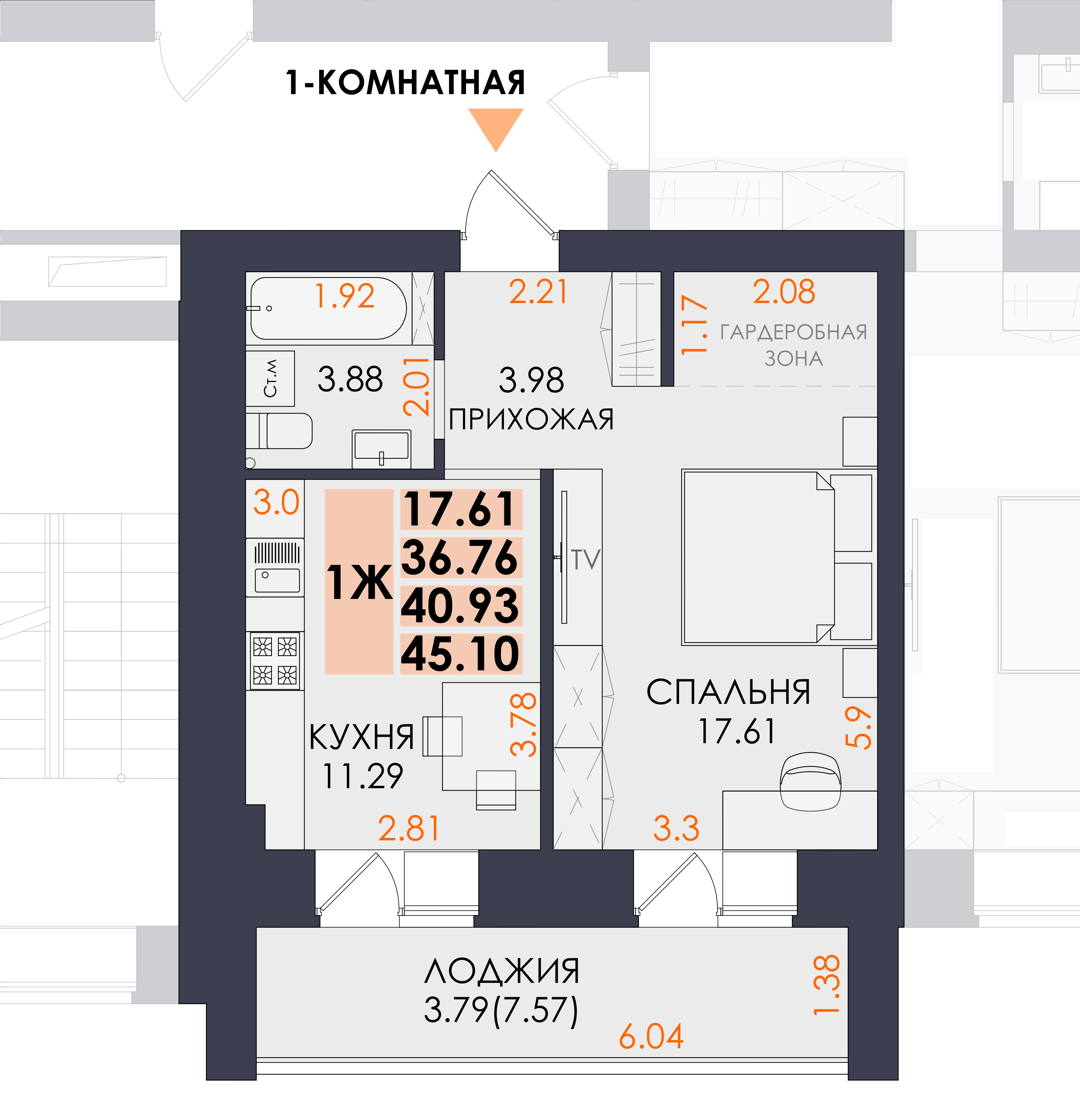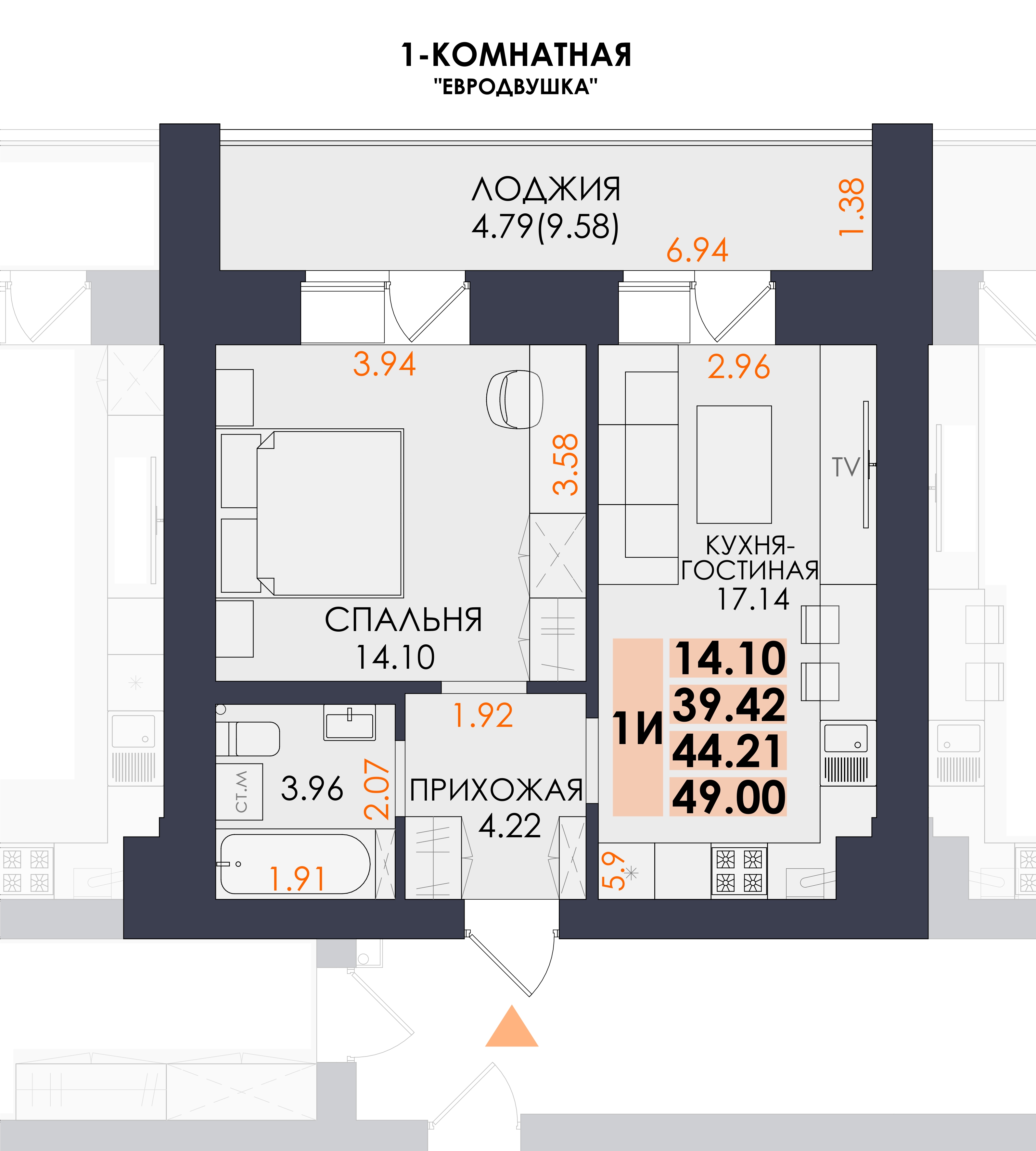 | 1-комн | от 41 м² до 49 м² | от 4,75 млн ₽ | 11 |