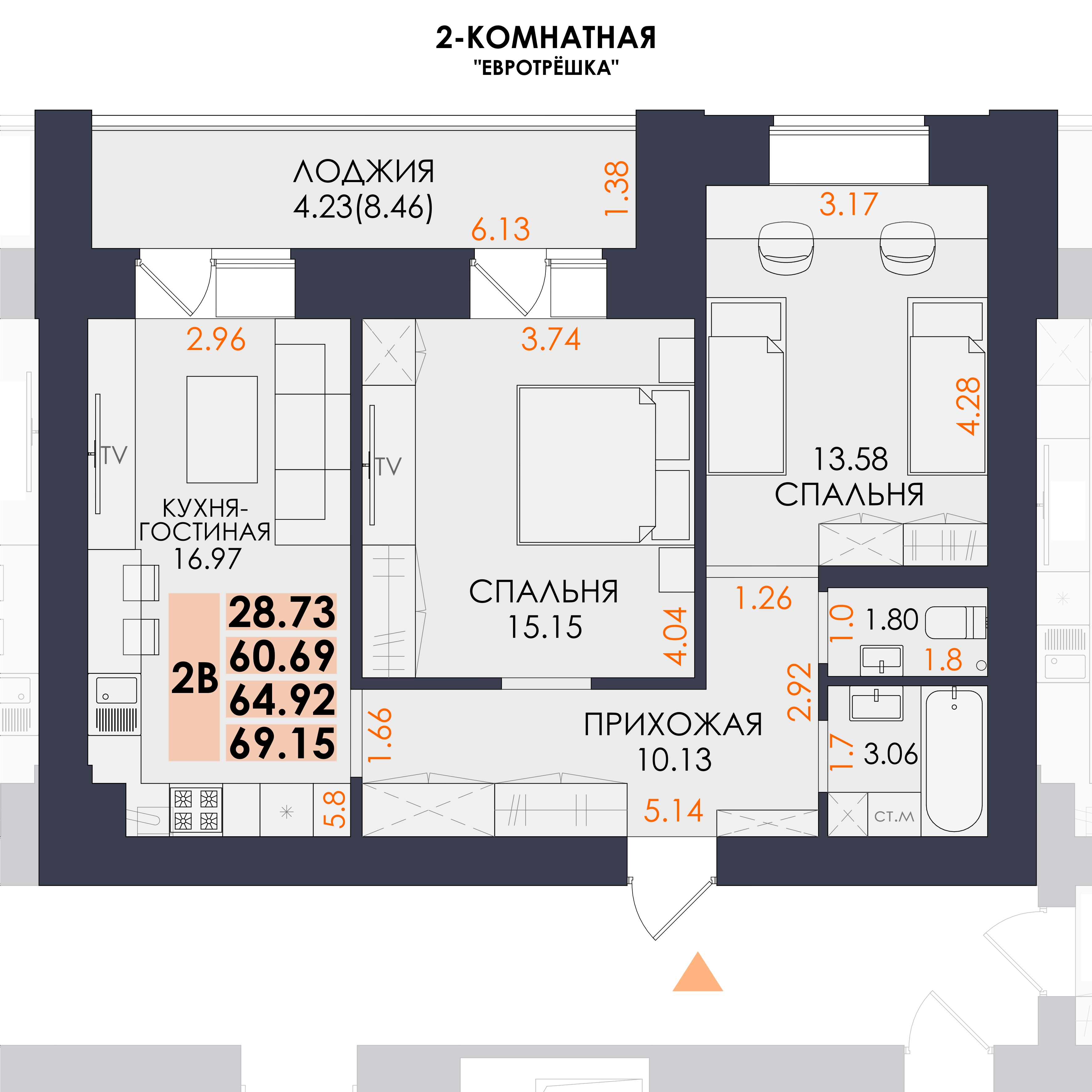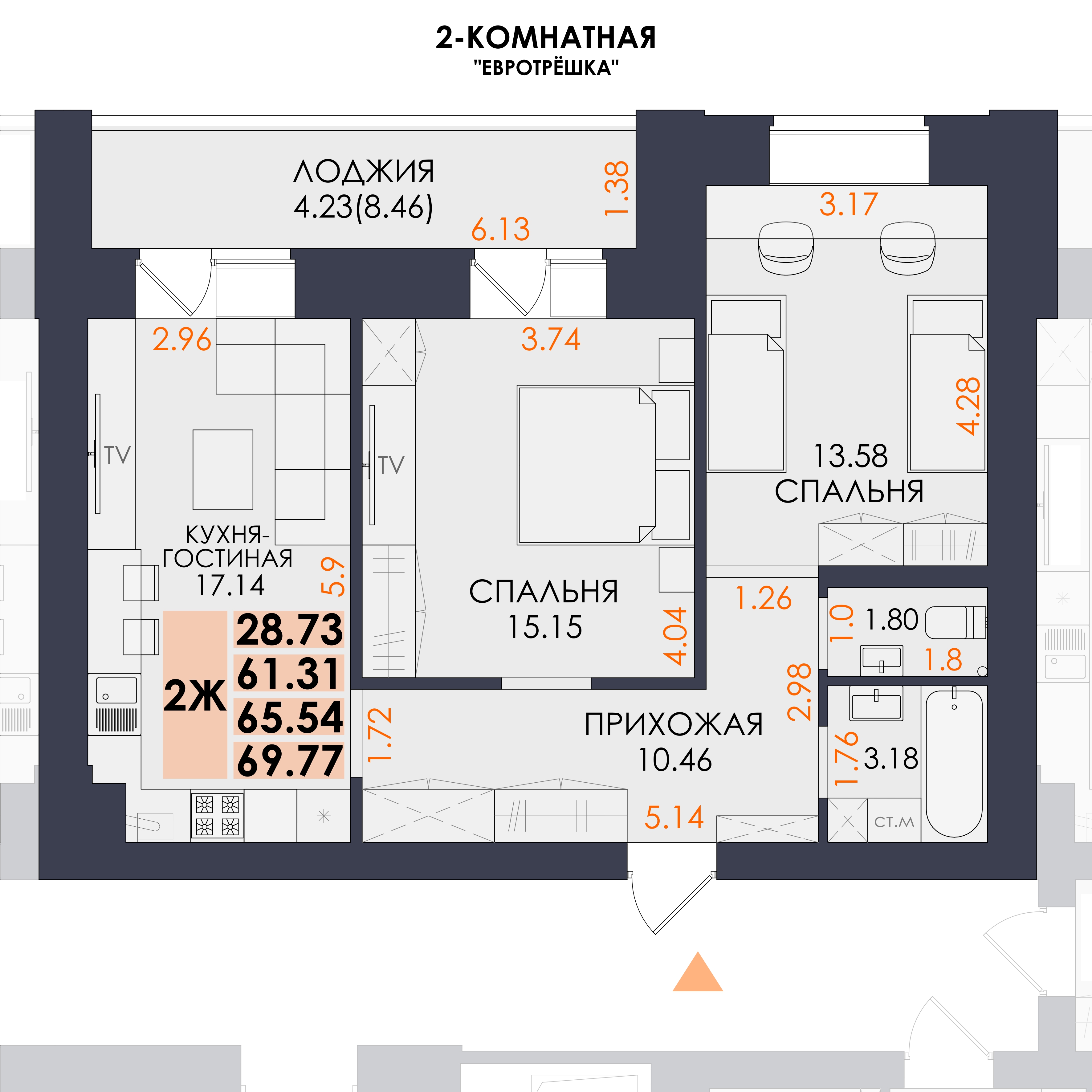 | 2-комн | от 68 м² до 70 м² | от 8,43 млн ₽ | 6 |